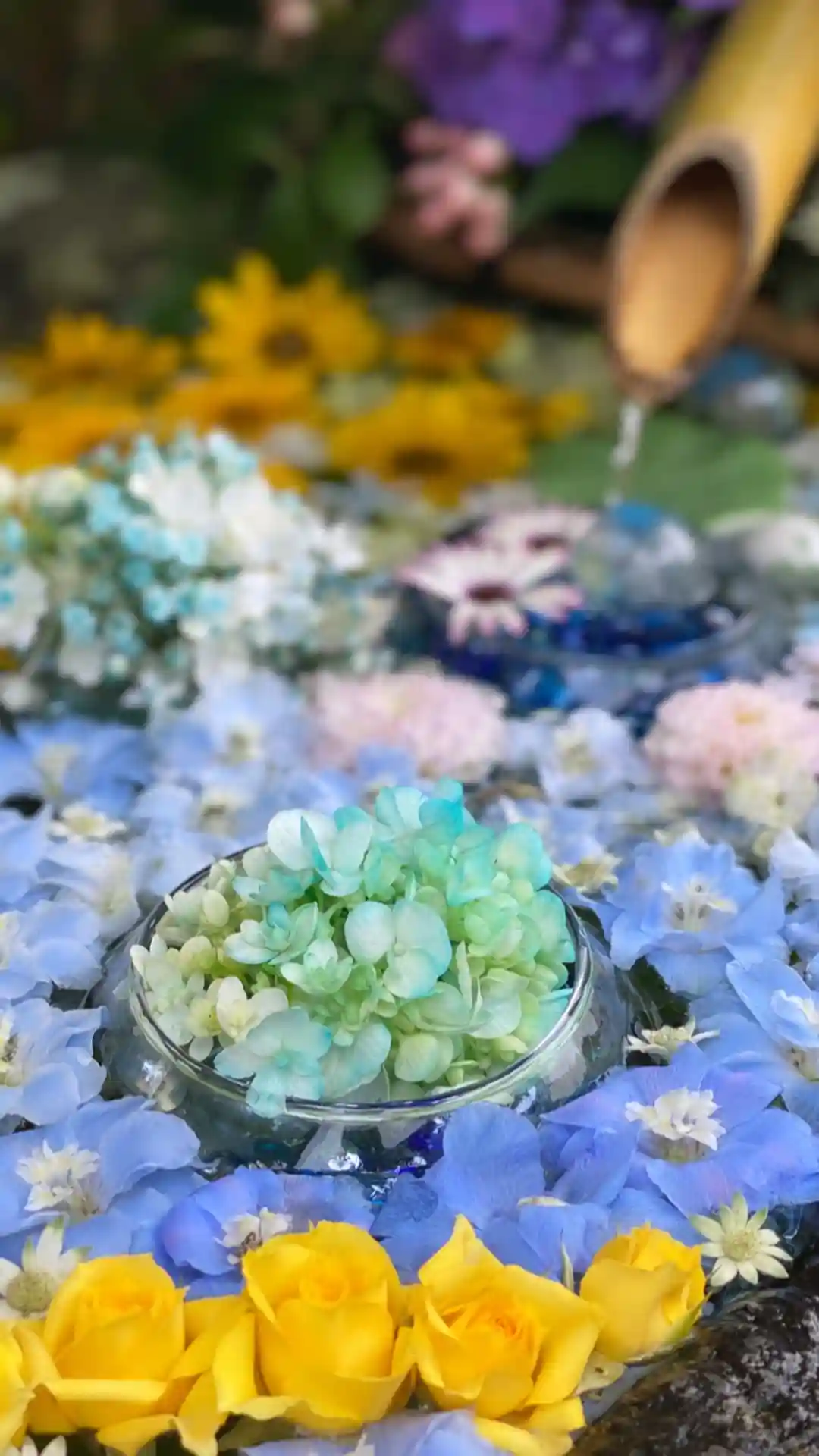 今日は七夕バージョンの花手水🌸を