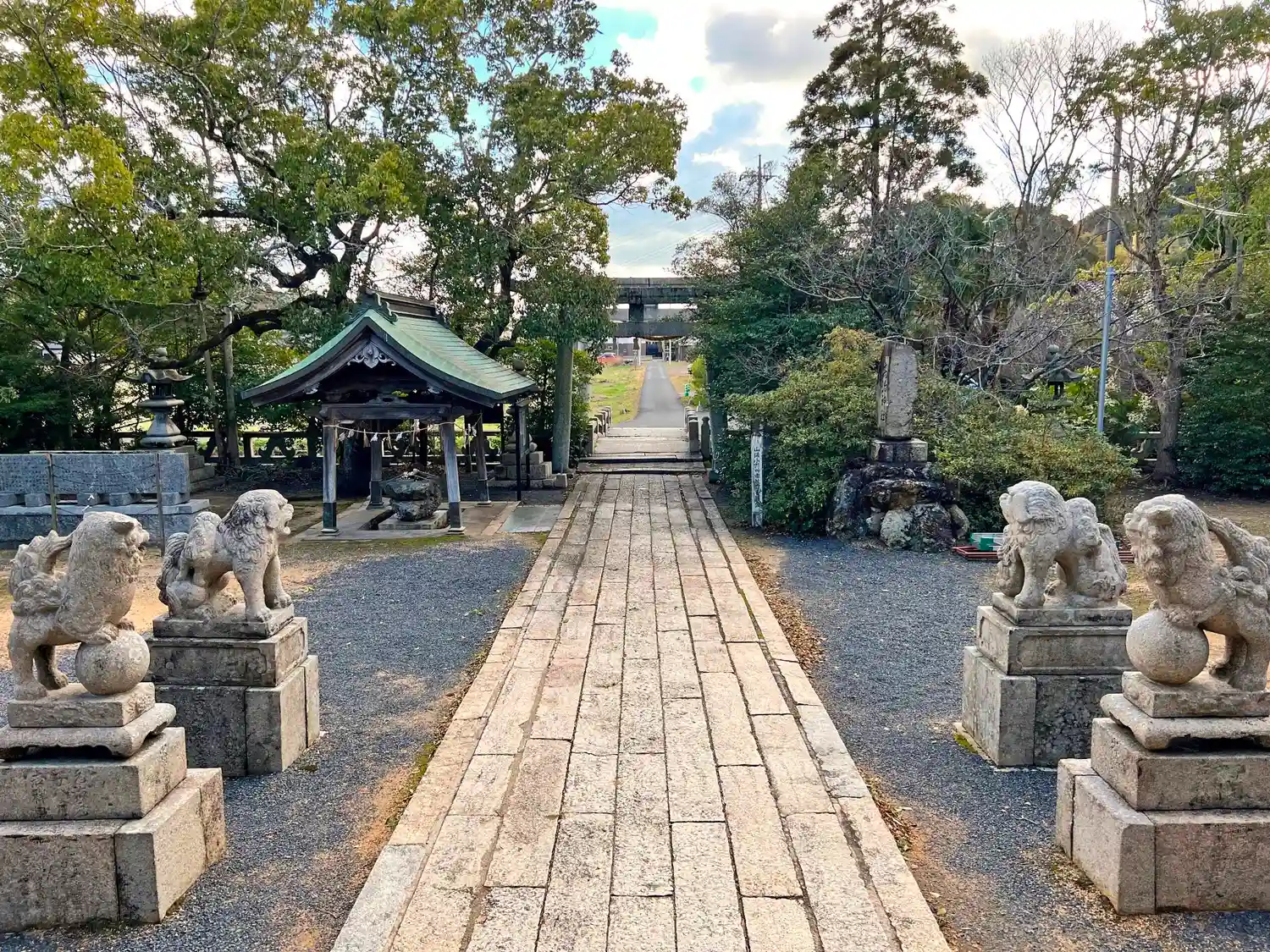 拝殿から振り返って境内全景。