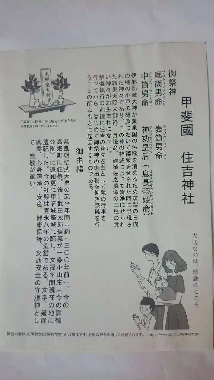 | ご祭神 | 《主》底筒男命,中筒男命,上筒男命,息長帯姫命 |