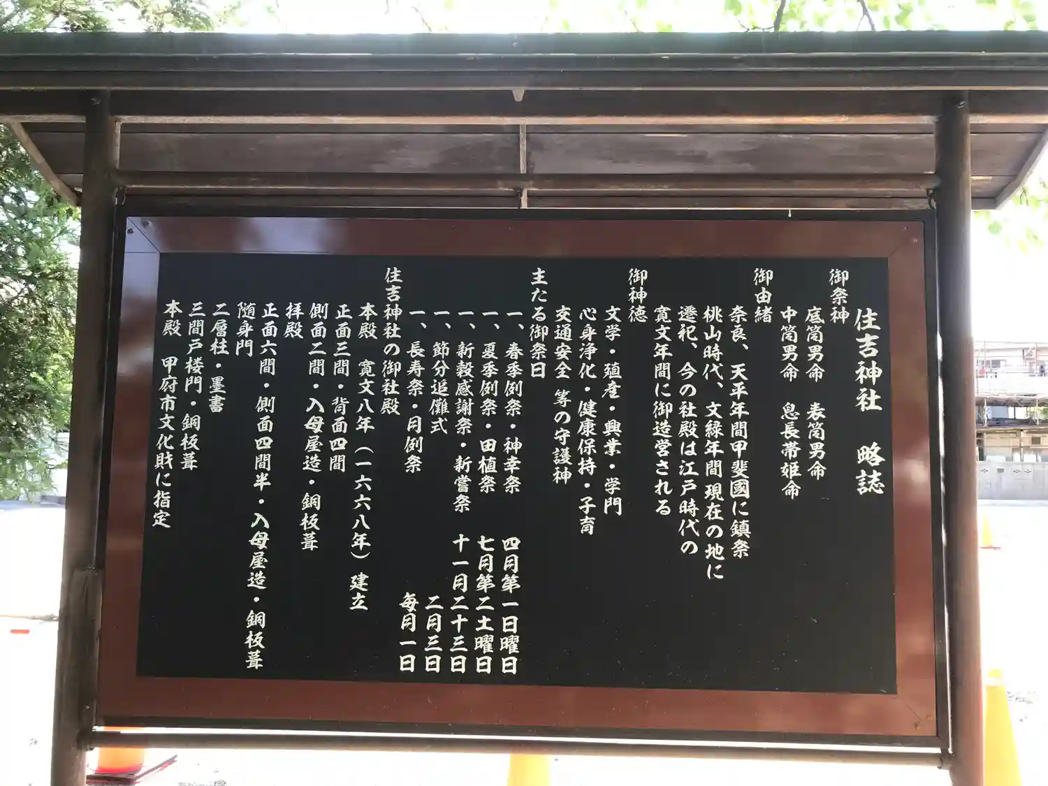 一宮浅間神社様から甲府市の甲斐国住吉神社様へ。こちらの御祭神は底筒男命、中筒男命、表筒男命。創建は…