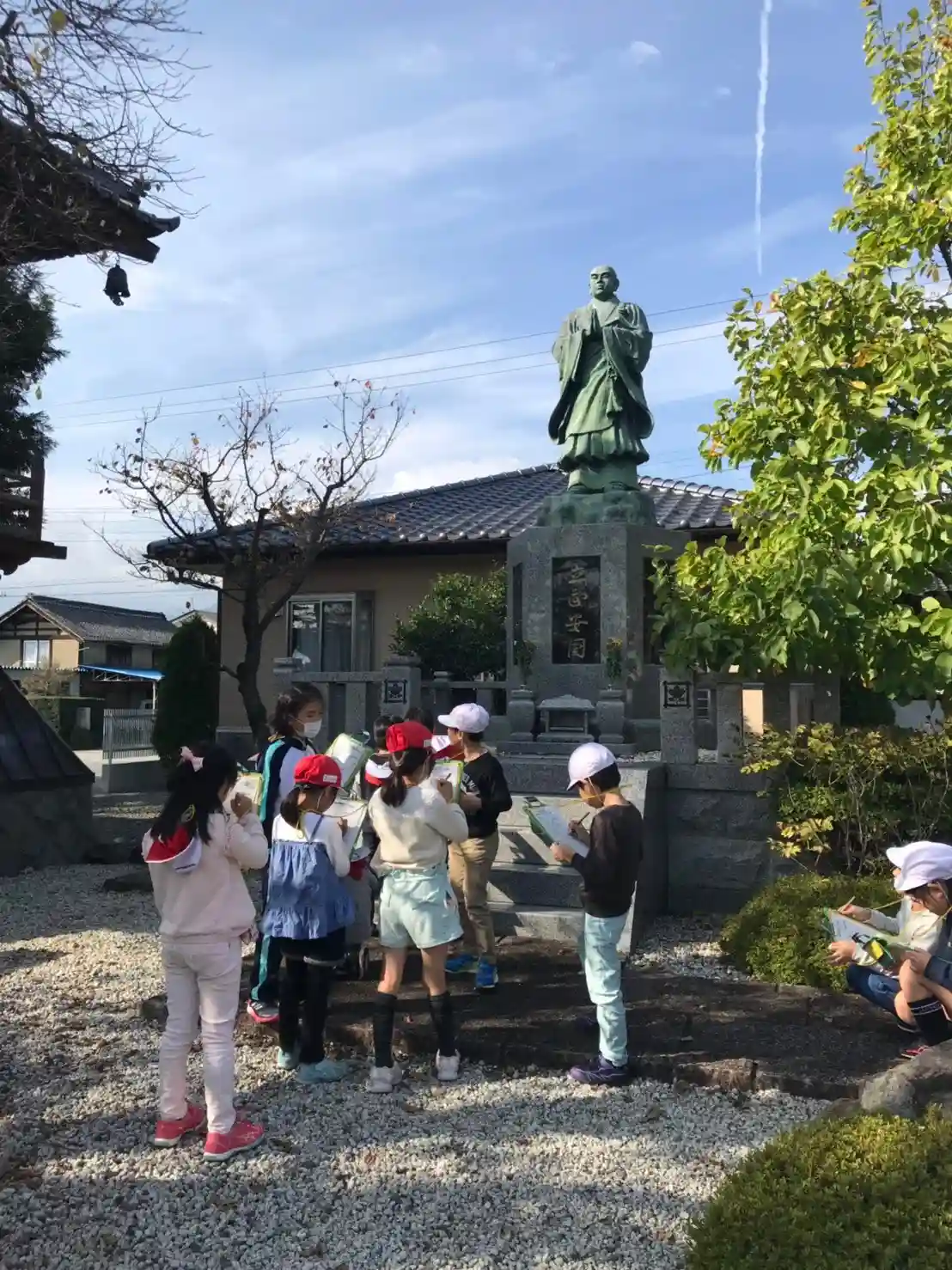 地元豊小学校始まりの地として、地域ではおなじみ(にしたい)の当山ですが、今年も小学2年生が町探検で訪れてくれました。