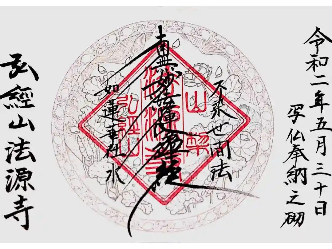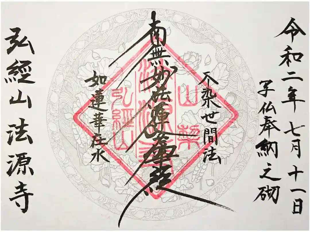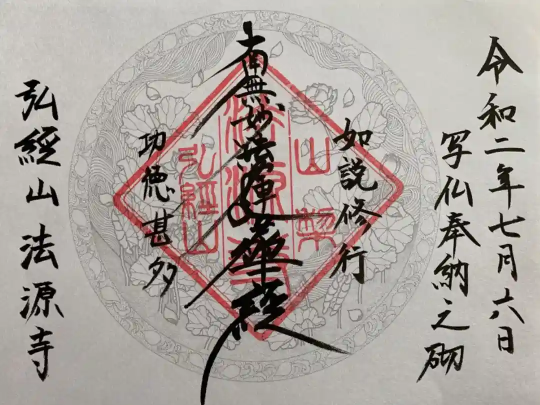 そして後日、法源寺さんから送られてきました、こちらの御朱印(御首題)が。