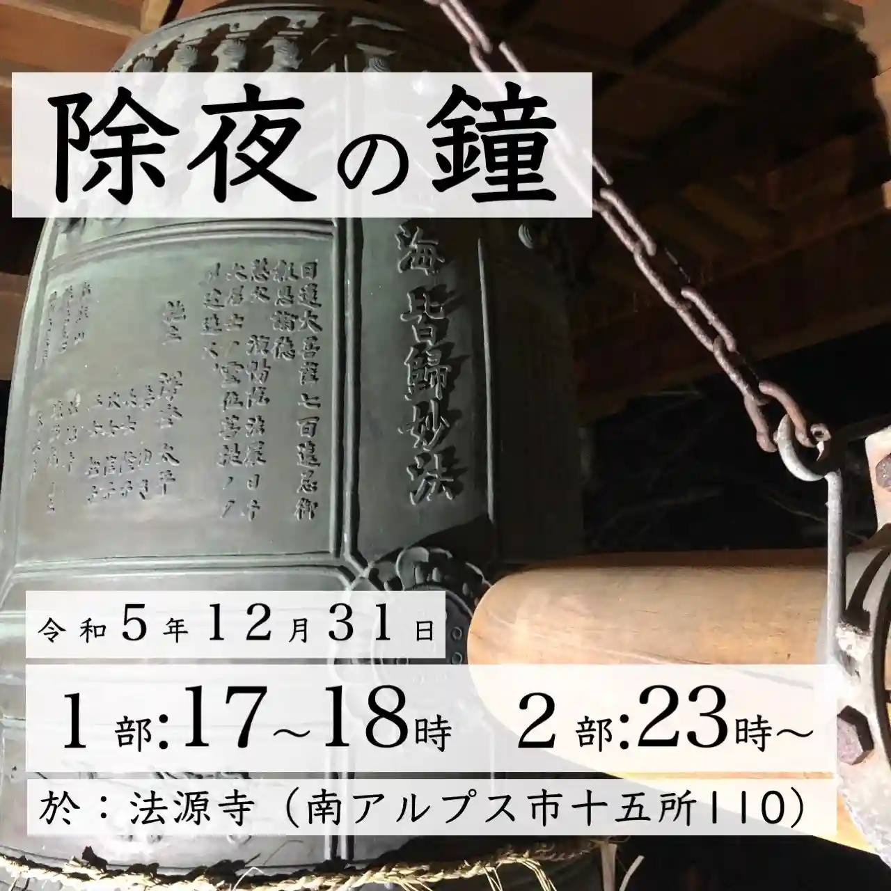 【除夜の鐘のご案内】南アルプス市法源寺