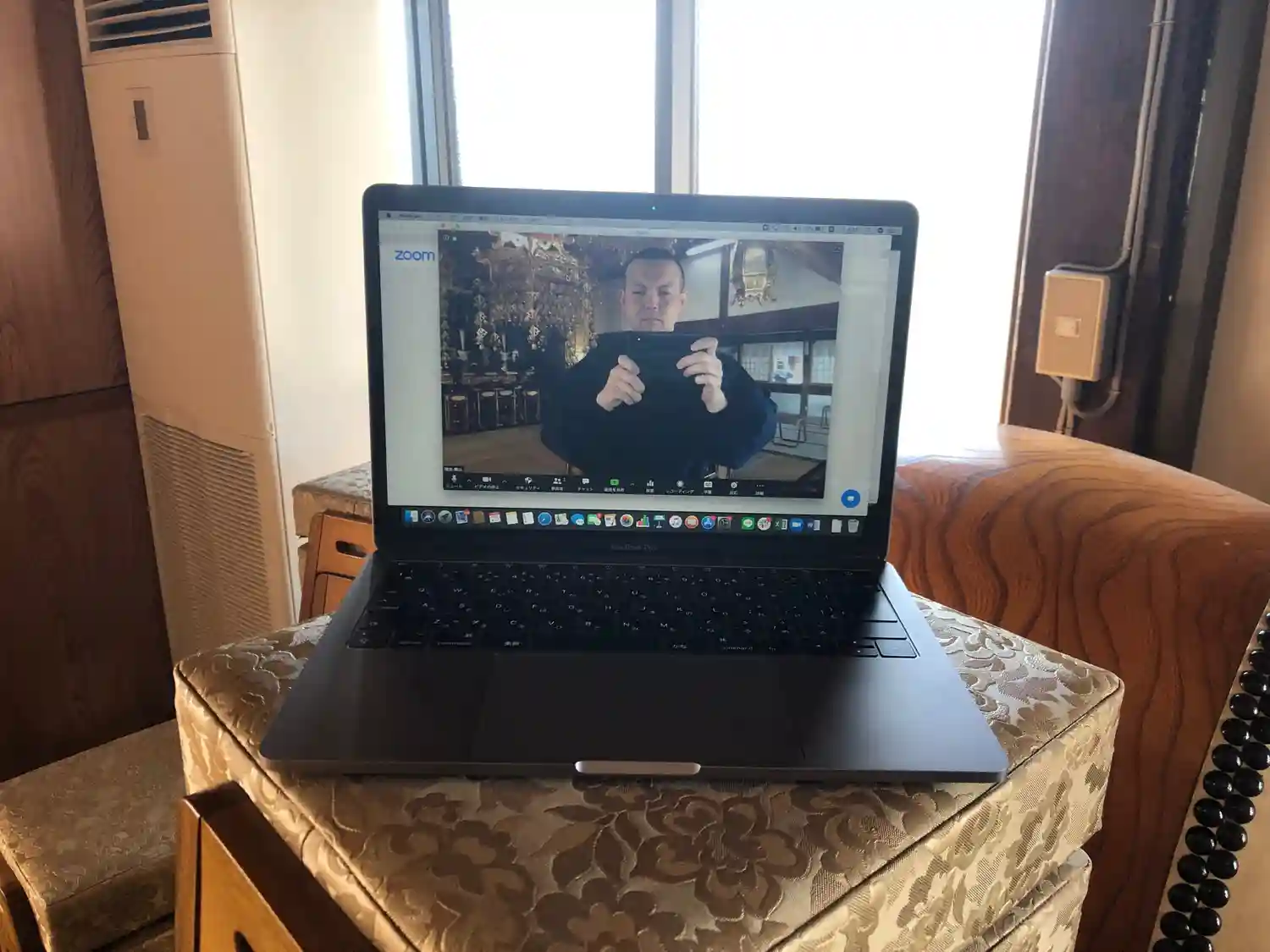 積み上げた椅子の上にPCを設置する手作り感!笑
