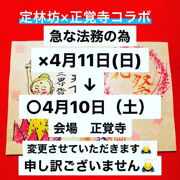 ✖︎4月11日(日)→【○4月10日(土) 会場 正覚寺】
