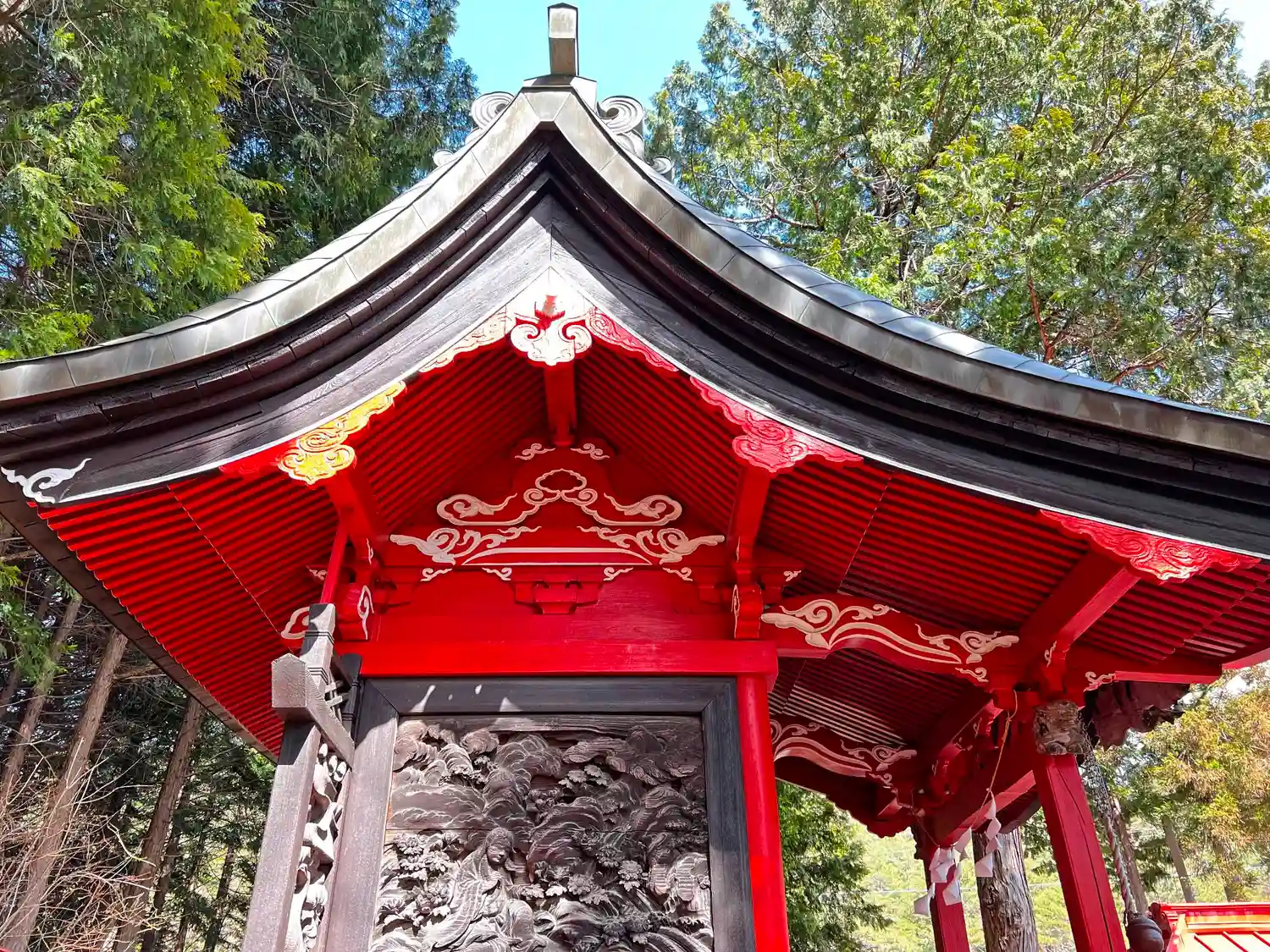 社殿右側・後壁脇の彫刻。