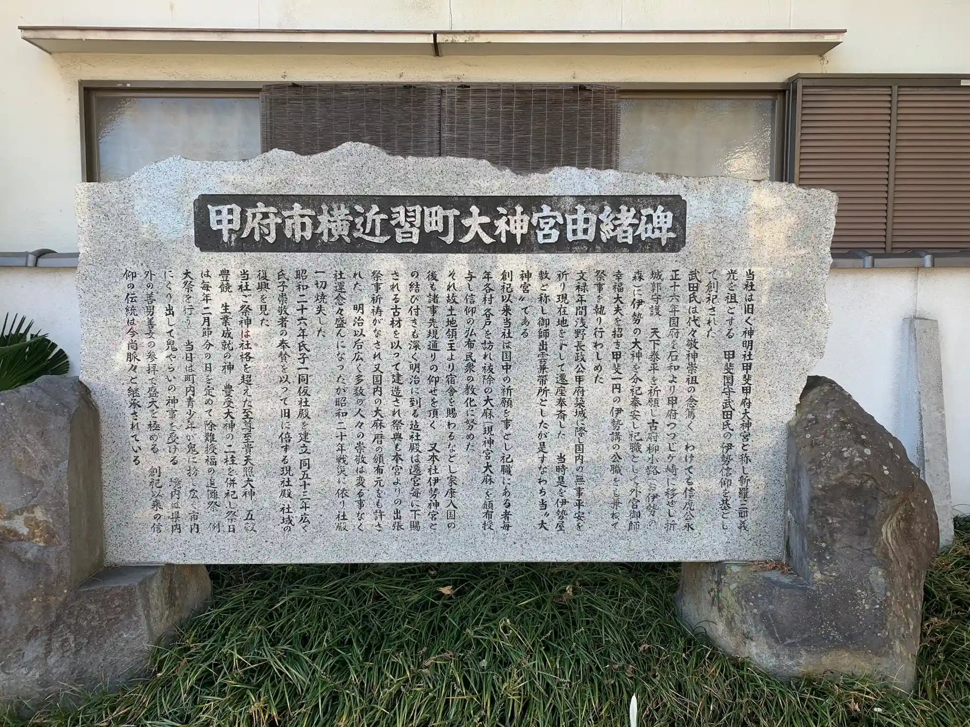 甲府駅近くの横近習(これは通りの名前なのかな?)に鎮座する、天照大神と豊受大神をお祭りする神社です。