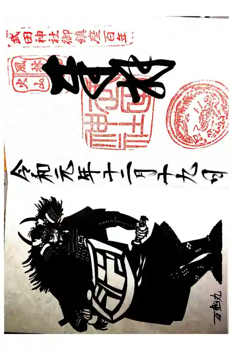 武田神社の書き置き御朱印2枚と御朱印帳です。