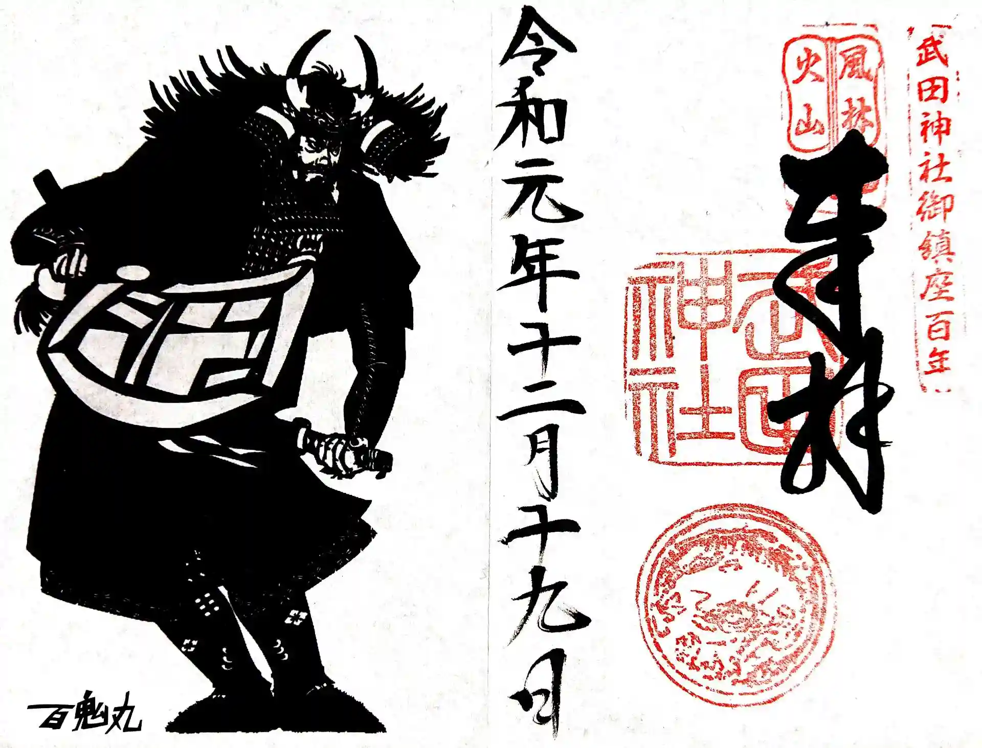 武田神社の書き置き御朱印2枚と御朱印帳です。