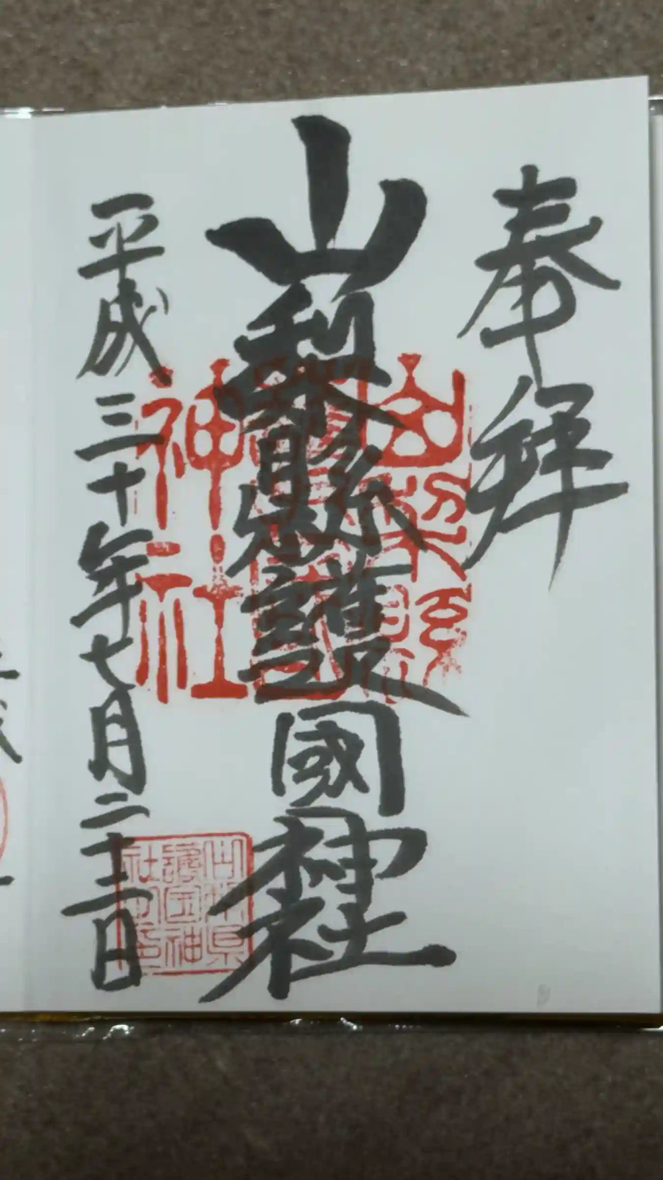 | 御朱印 | あり 真ん中に山梨縣護國神社と書かれ、社印が押された御朱印です。