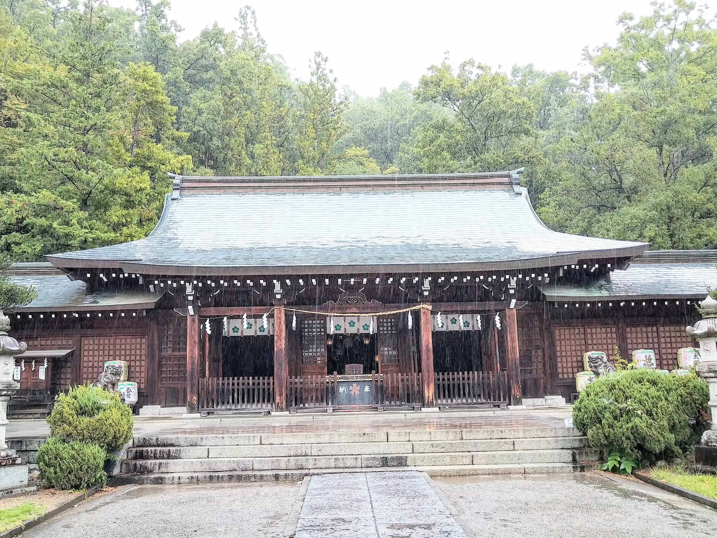 雨の日の参拝です🙏…濡れた社殿は重厚さが増していました🤗