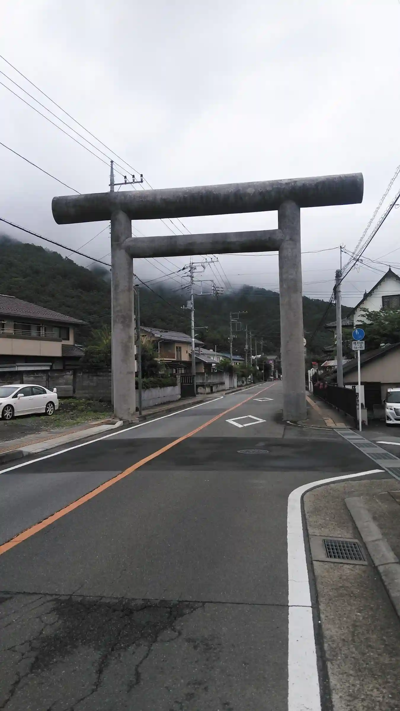 護国神社手前の道路に大きな鳥居