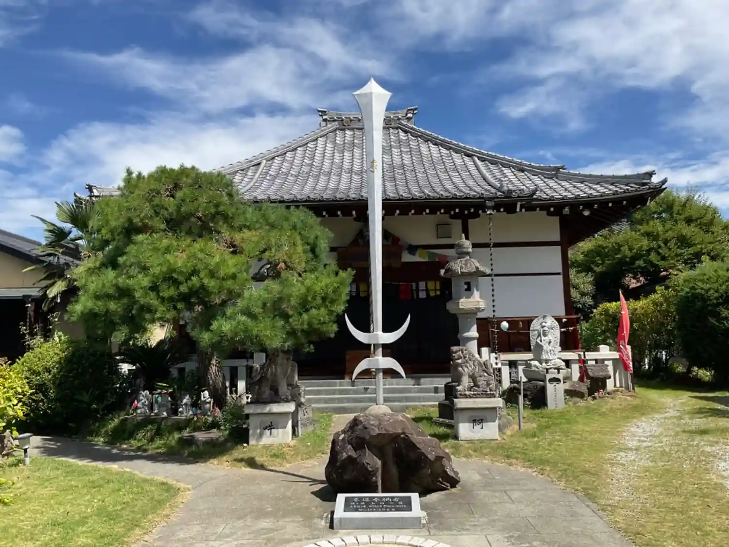 本堂の目の前にでっかい剣が立ってます。でっかいのが。