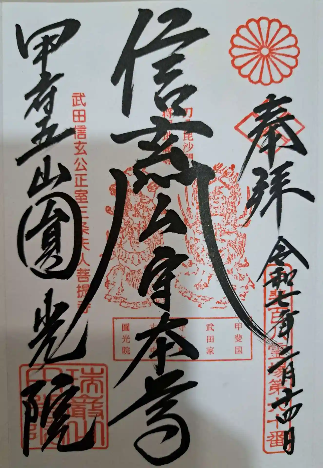 甲府五山のひとつ、円光院で御朱印を頂きました。このときはコロナ対策で書置きでした。