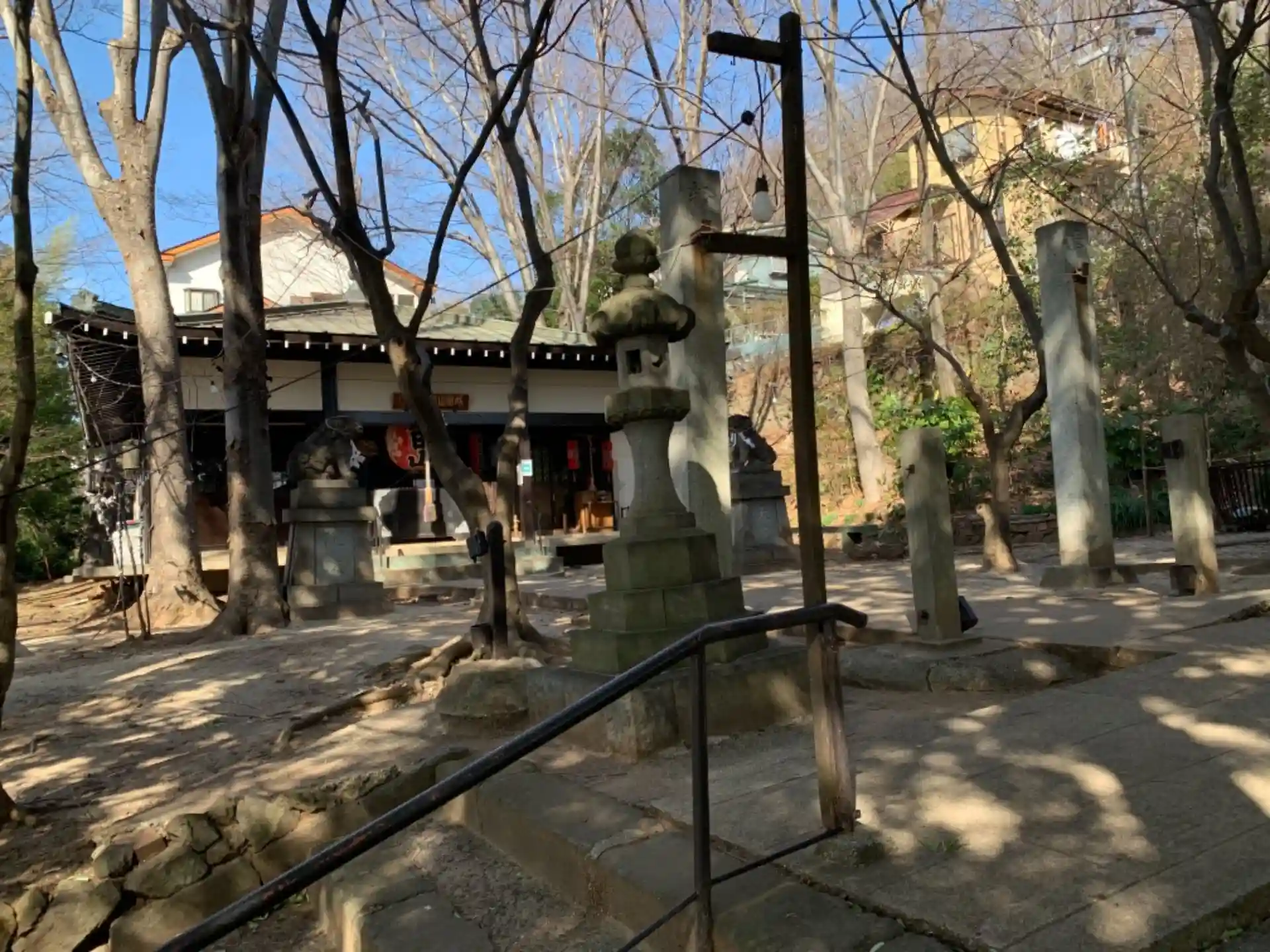 長い石段があり、お百度石。