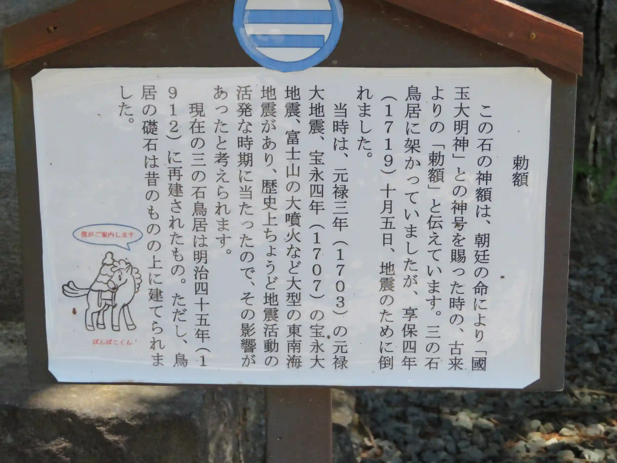 三の鳥居にあったものが江戸時代の地震で倒壊したようです