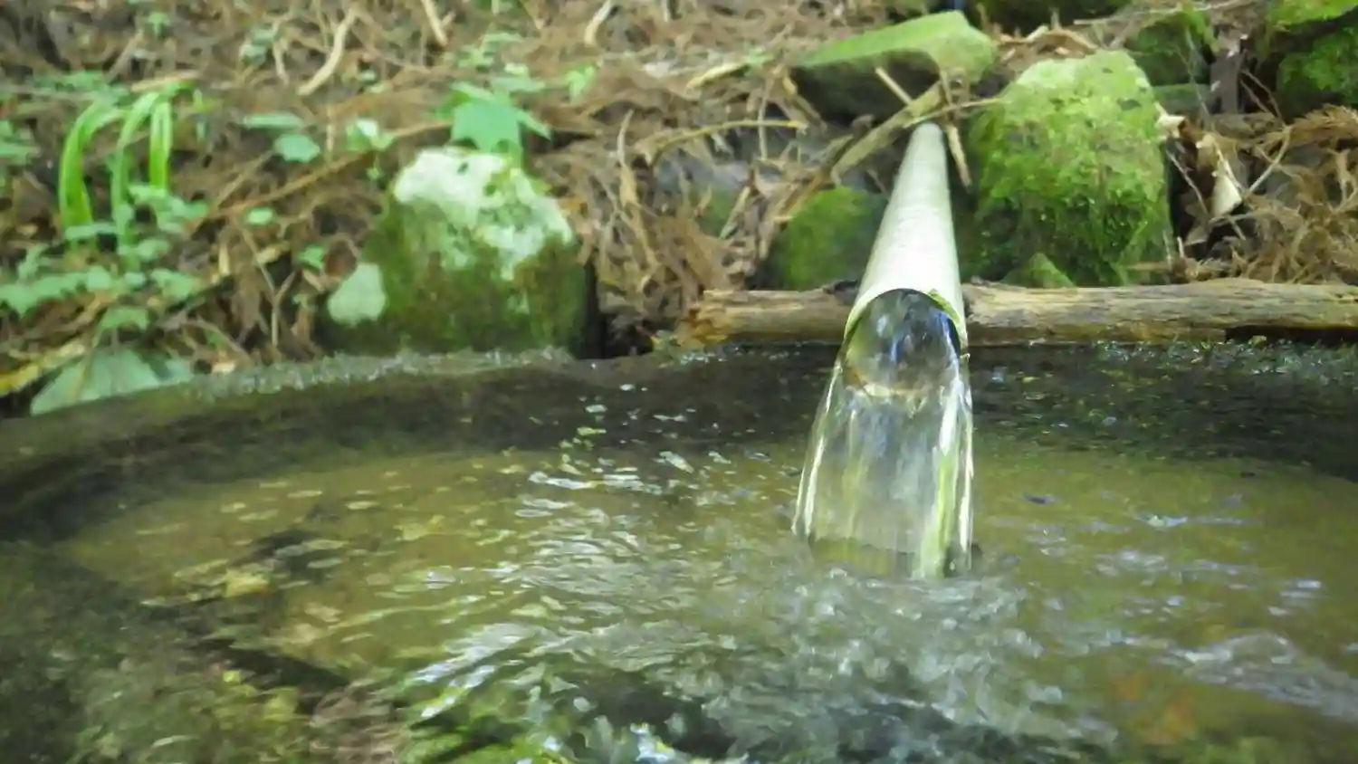 灯篭の山門を出て、沢沿いに降りだすと手水が豊富に湧いています。手と顔を洗ってさっぱりしました。ここから甲府の要害山へ向かいました。