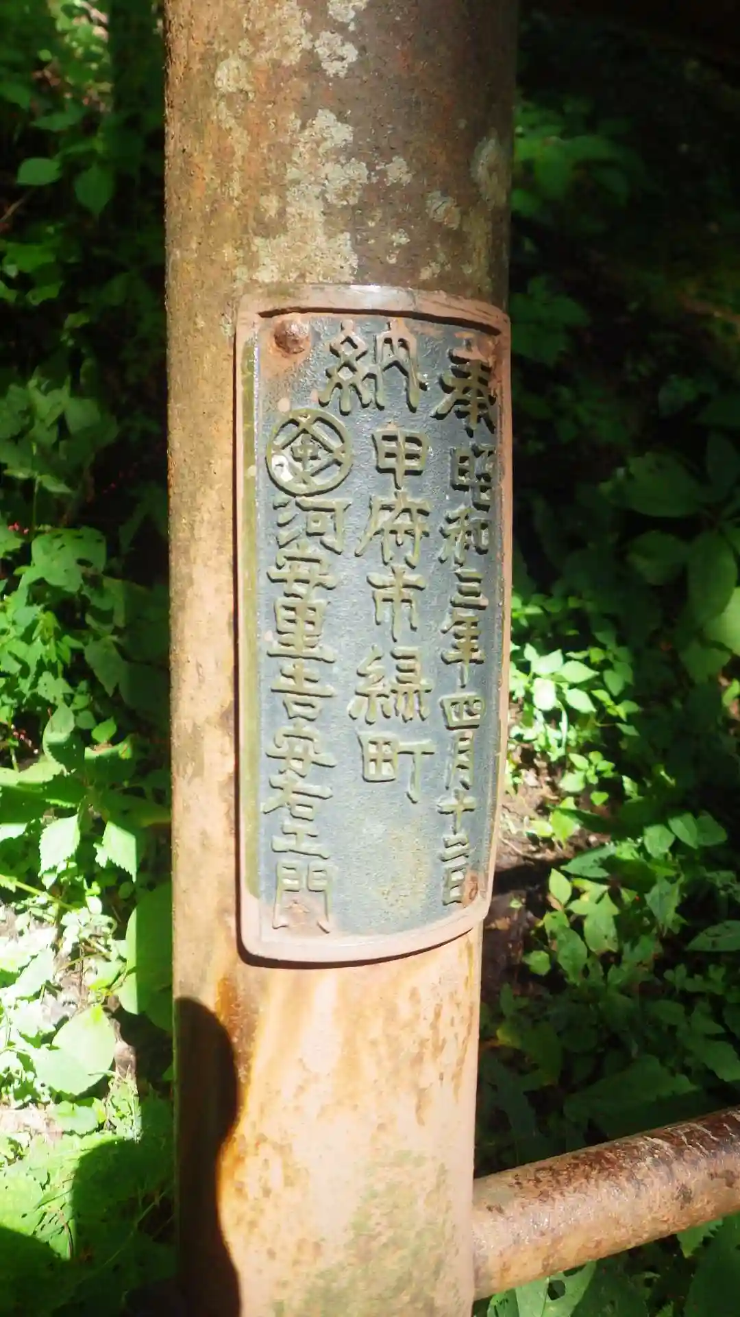 鉄梯子に昭和3年(西暦1928年)と書いてあります。94年前です。いやーんという感じです。梯子以外で登れるところを捜して奥に進みます。