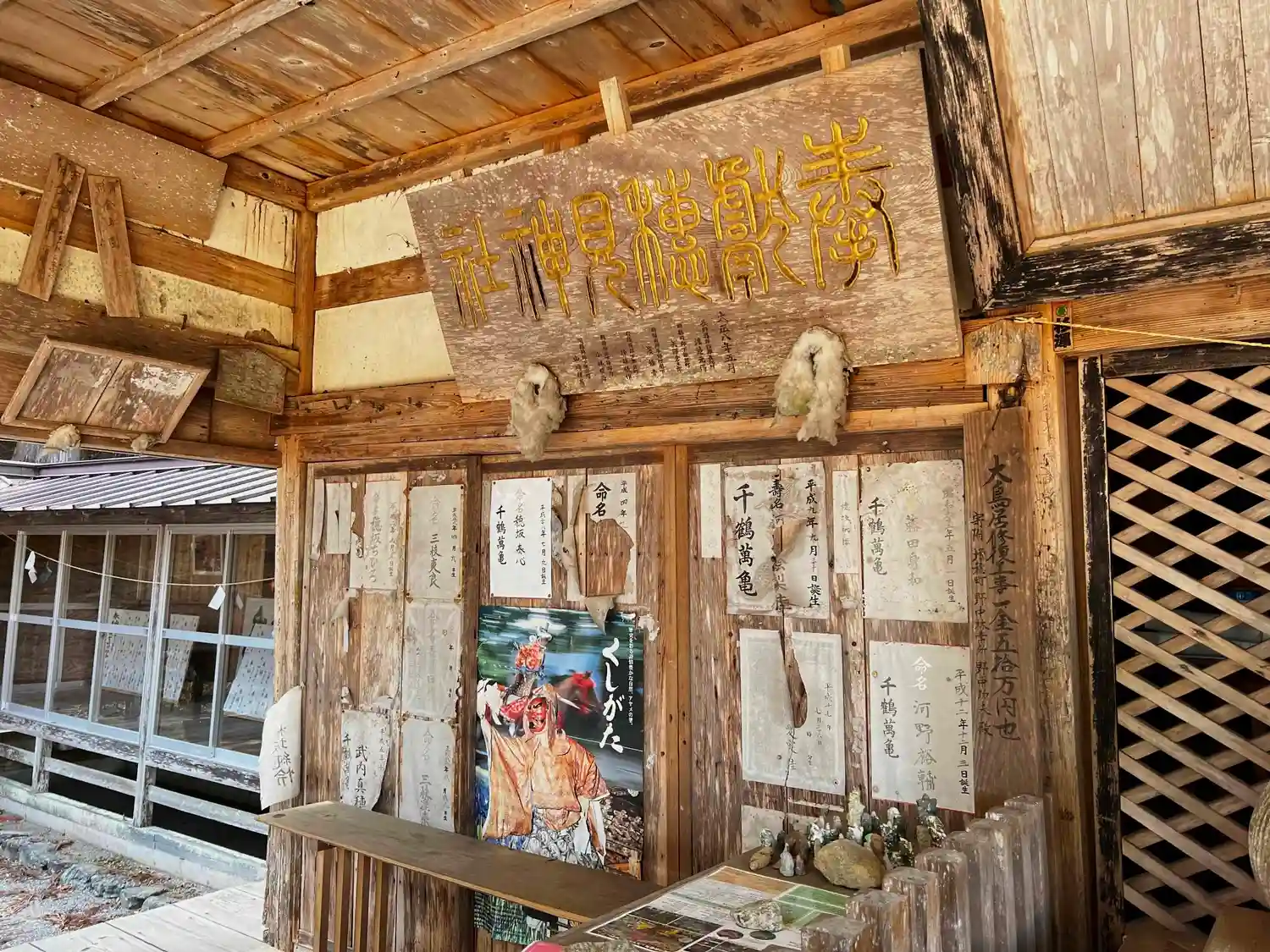 賽銭箱左側の扁額、絵馬など。