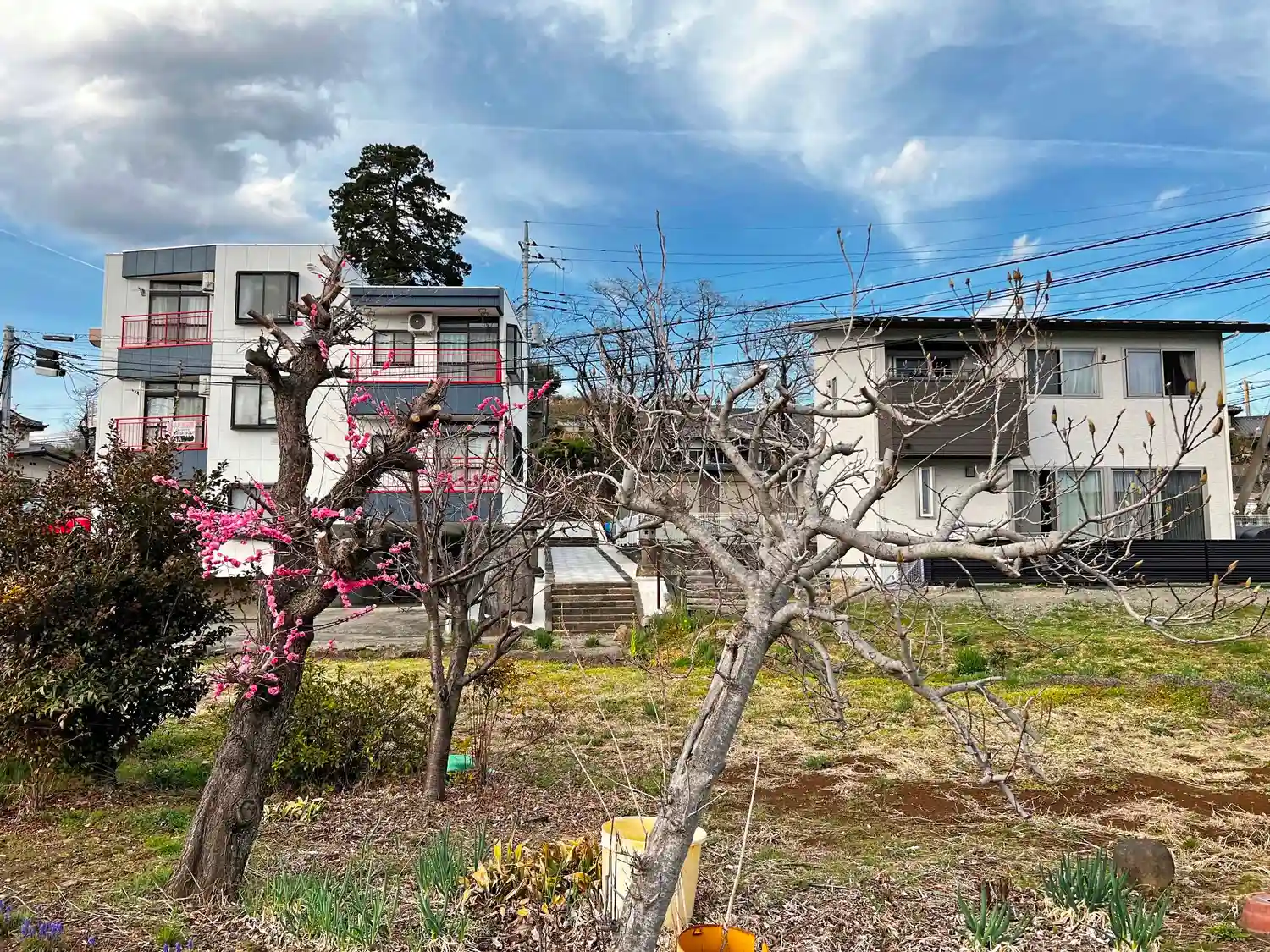 振り返って、参道の先に見える景色はこちら。ちょうど薬師堂と本堂の間。道理で、南側の道からは寺院らしい建物が見えないわけだ...(^_^;)