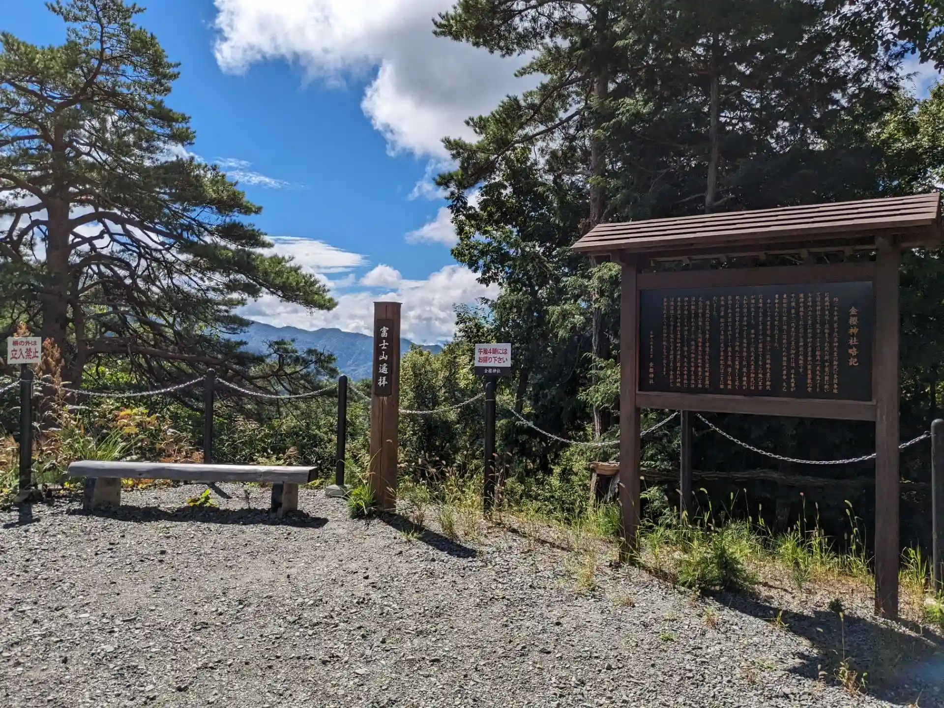 参拝後、奥の方に金峰山と富士山の見える遥拝所の看板を見つけ、片道20分と書いてあったので車に戻って虫除けをふって帽子をかぶって登りました。