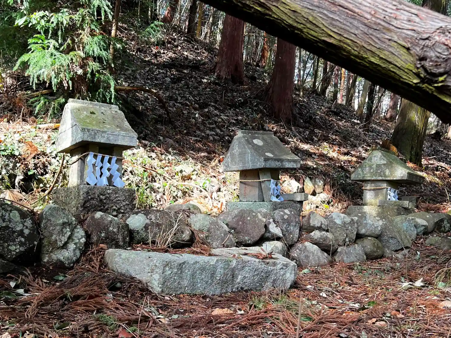 本殿の右側後方にある石製小社群。