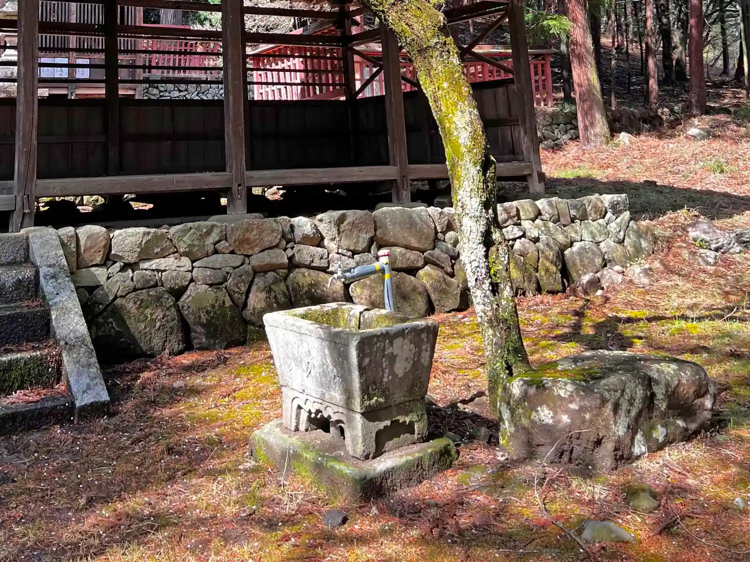 建物の前右手にある、小さな<手水盤>。