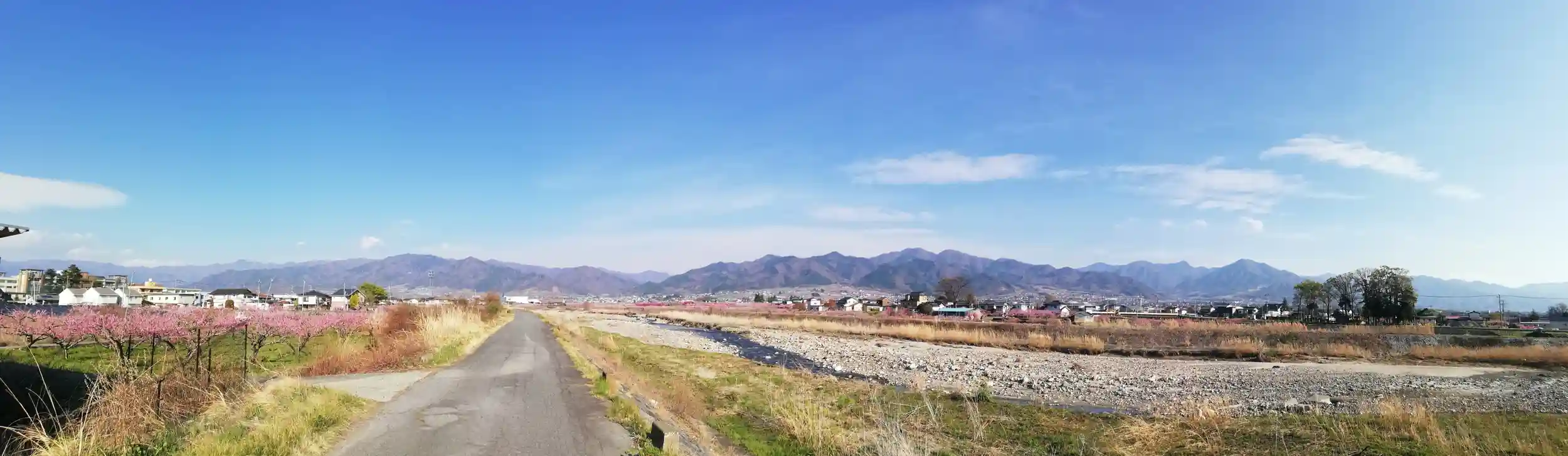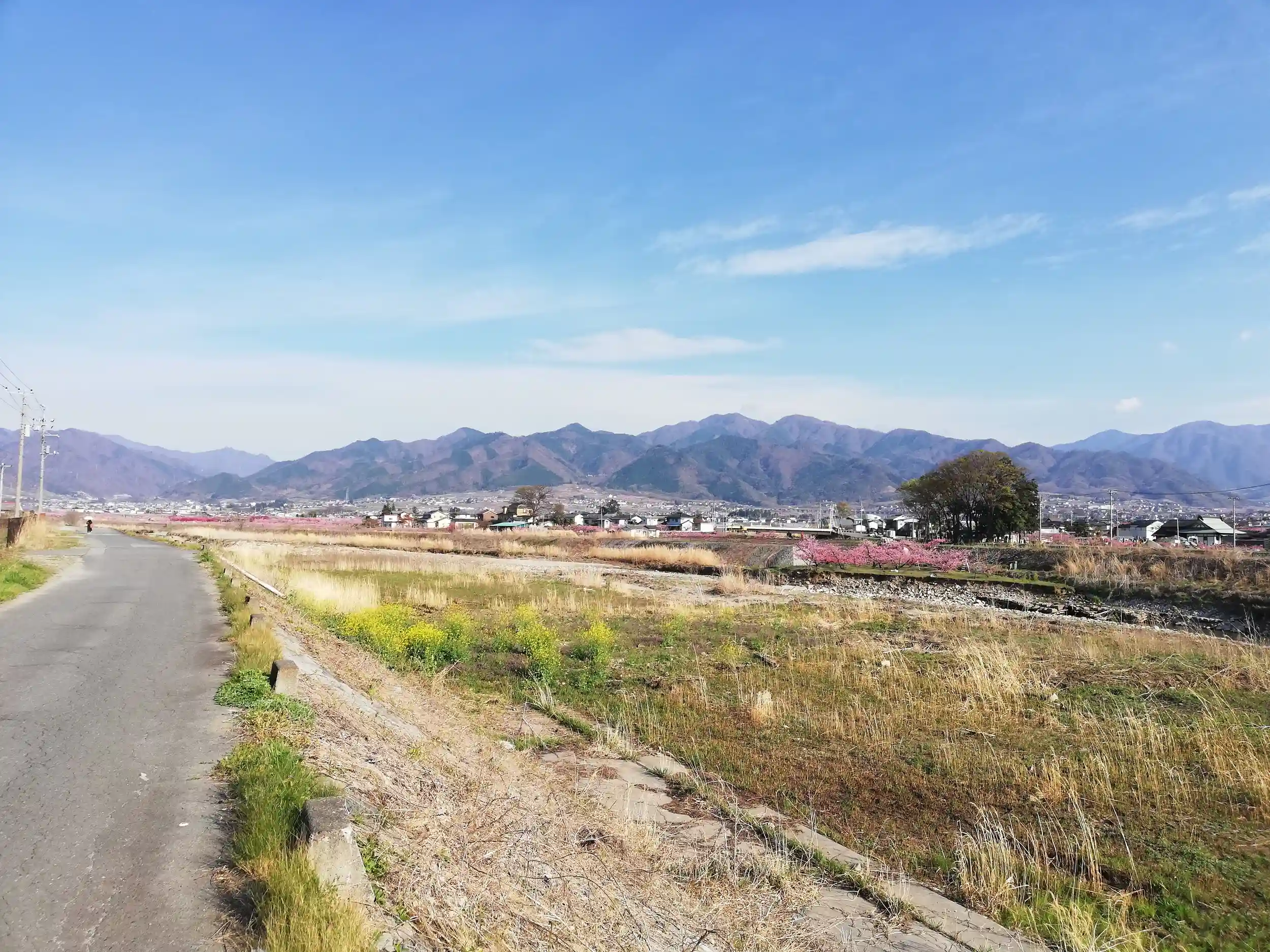 道中何回か川を渡りますが、これは日川沿いの土手道です。急ぎたいけどこの美しい景観を素通りはできない葛藤。。。結局撮影欲に負けました。おかげで帰路は時間との勝負で焦りました。