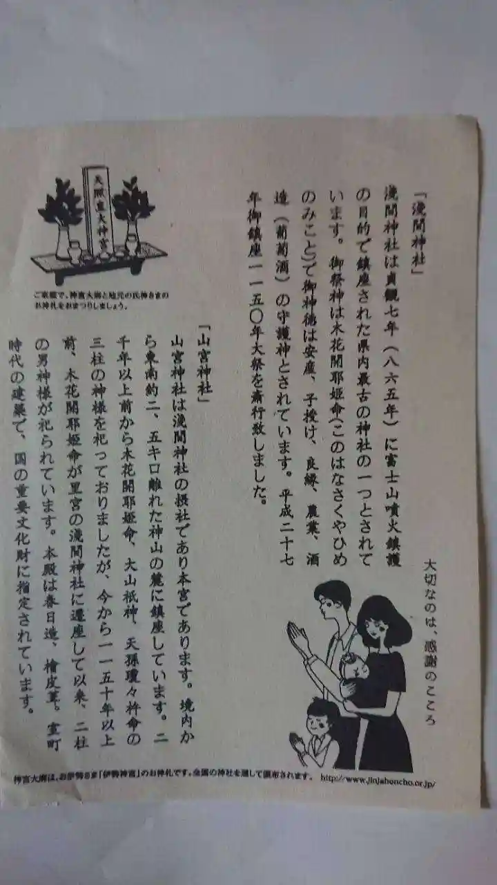 元々は、神山という山の麓にあった神社ですが、富士山の大噴火が起こった865年に、富士山の噴火を鎮め…