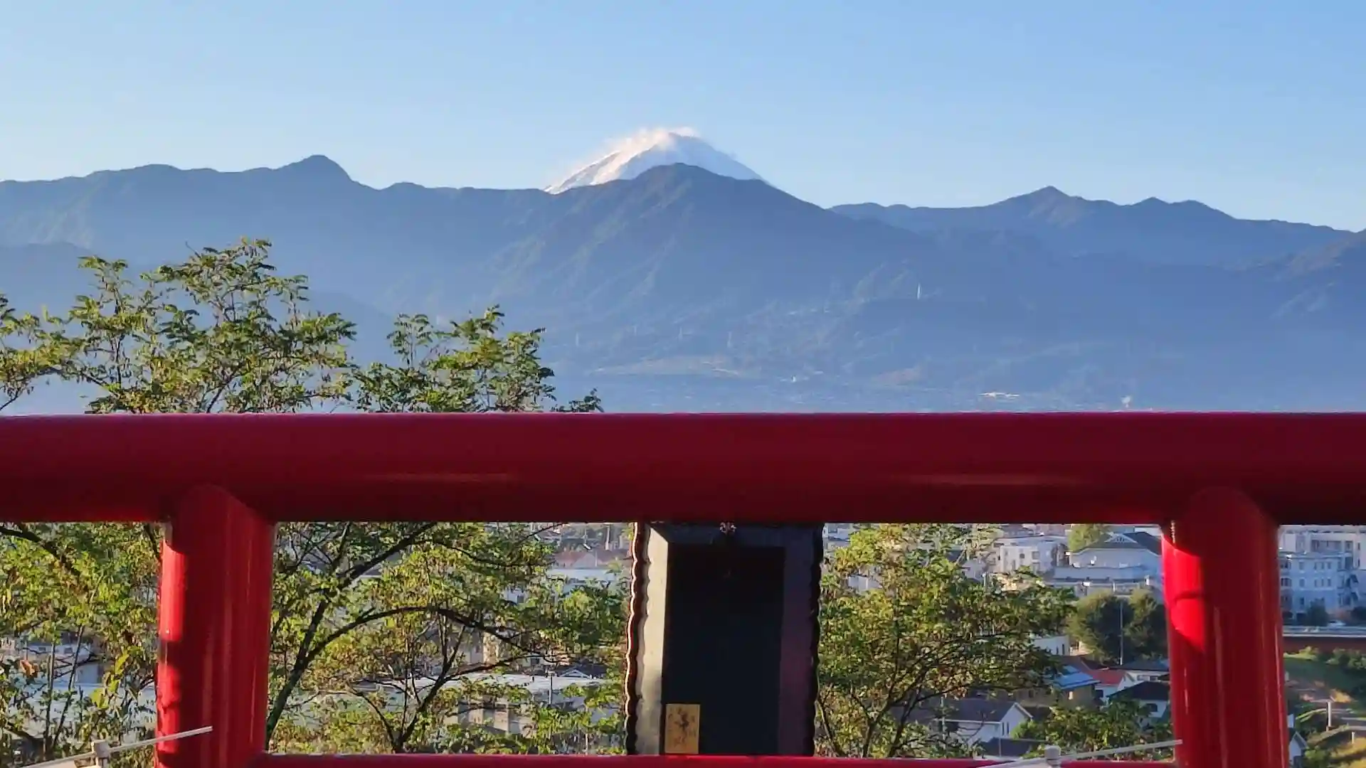 神社からもはっきりと富士山の冠雪が見えます