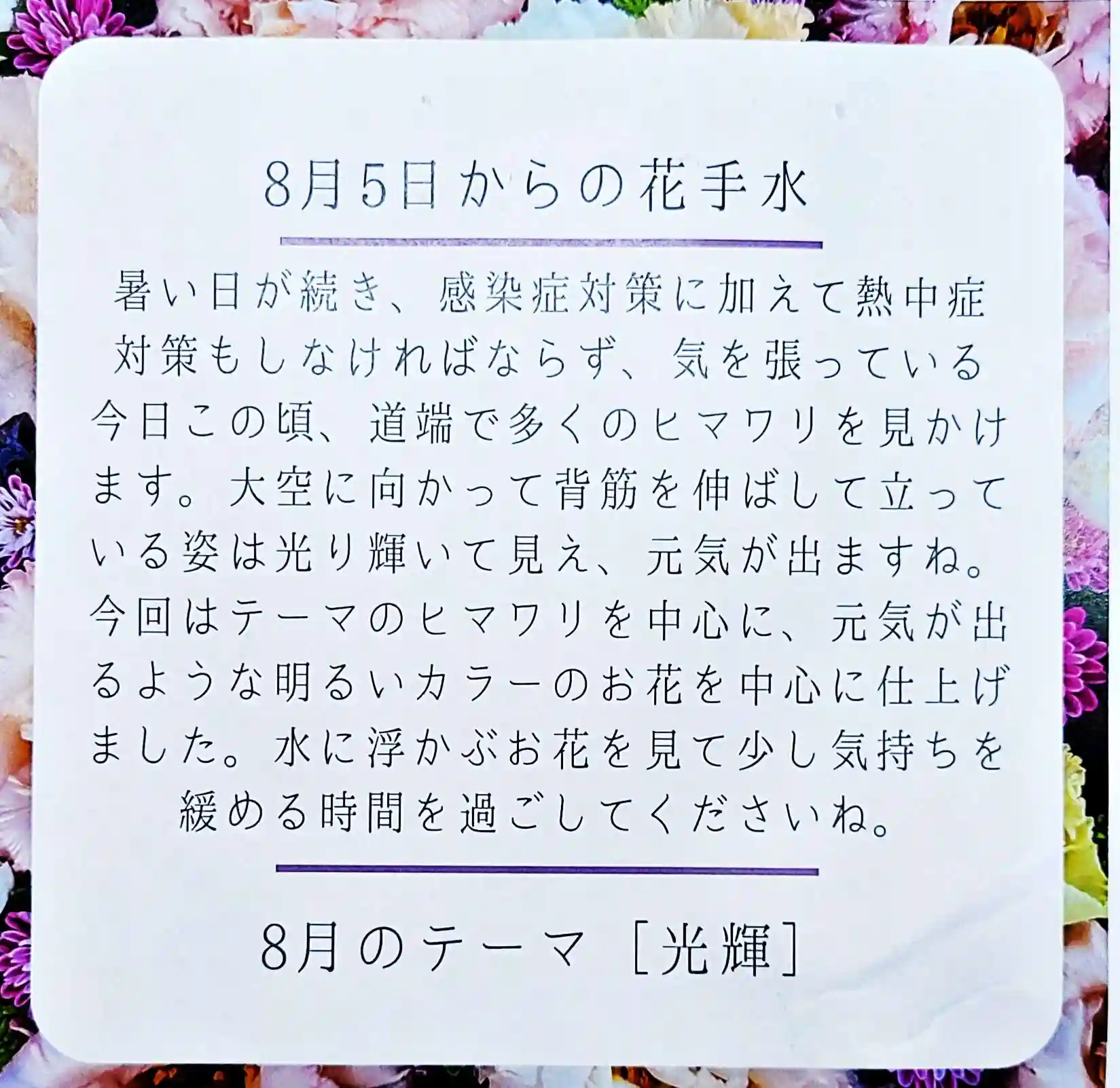 8月を先取りして花手水のテーマは