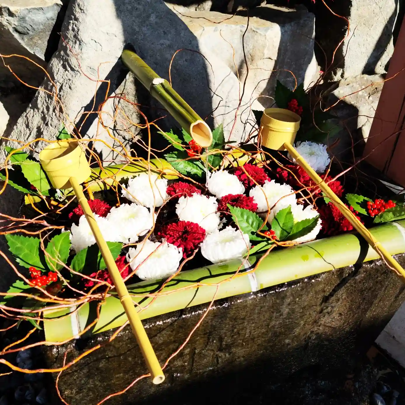 花手水の正月バージョン本日復活!