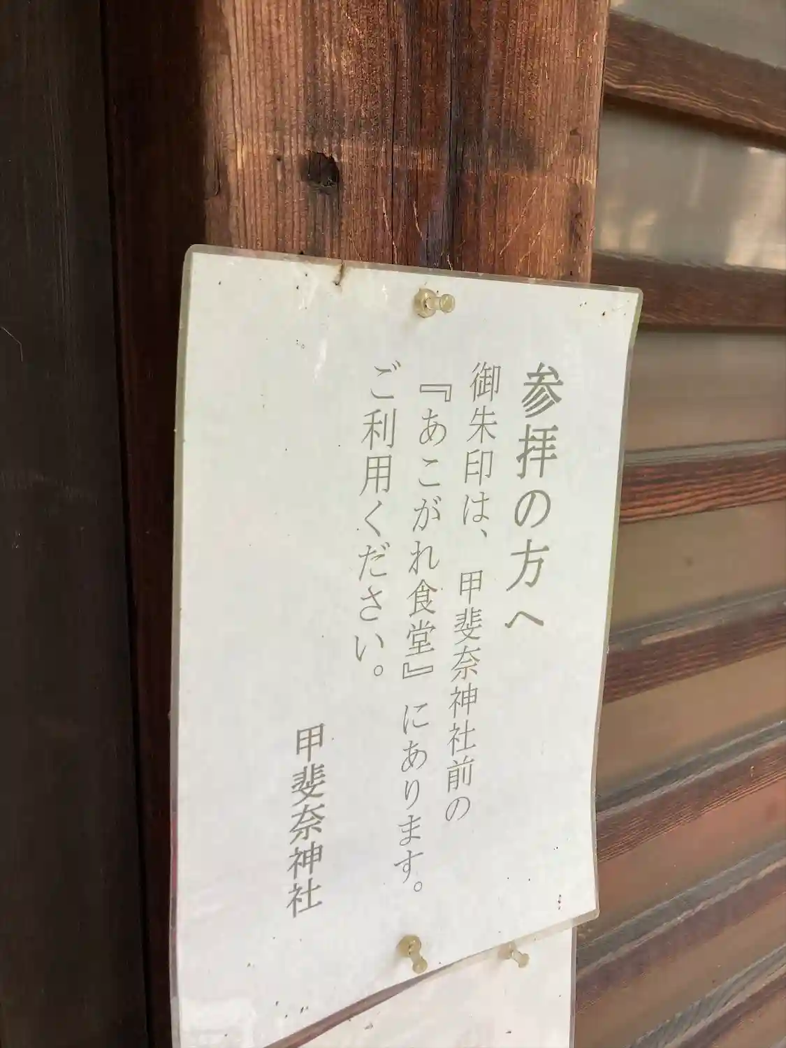 御朱印は、向いの食堂にあるとの張り紙。食堂が準備中で、御朱印は頂けなかった。