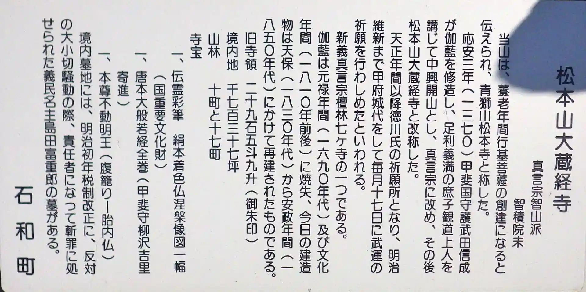 寺寶文化財の説明です。