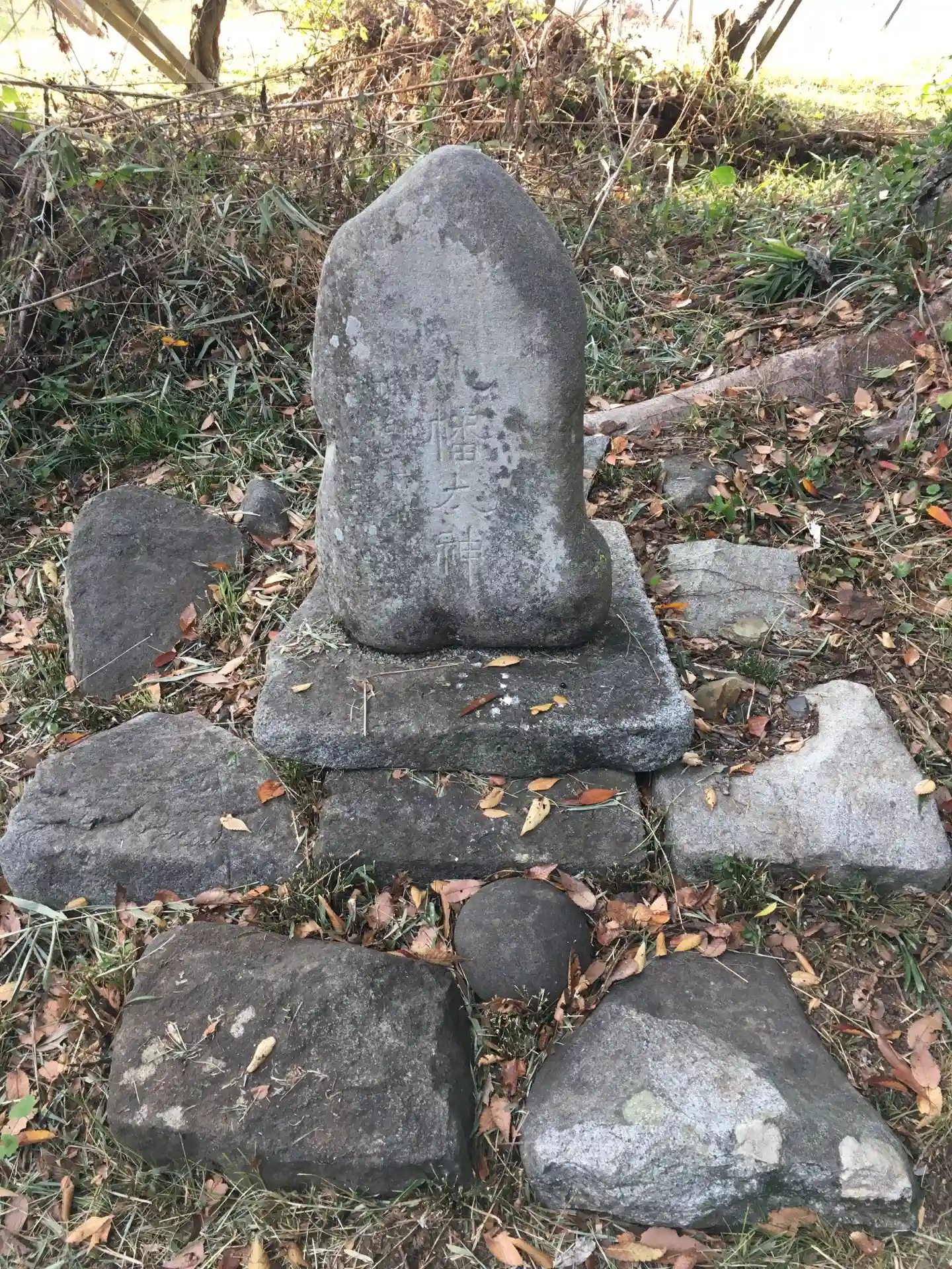 参道の途中、真ん中に石があって祀られてます。甲斐国二宮の美和神社も似たような感じだったかと思います。