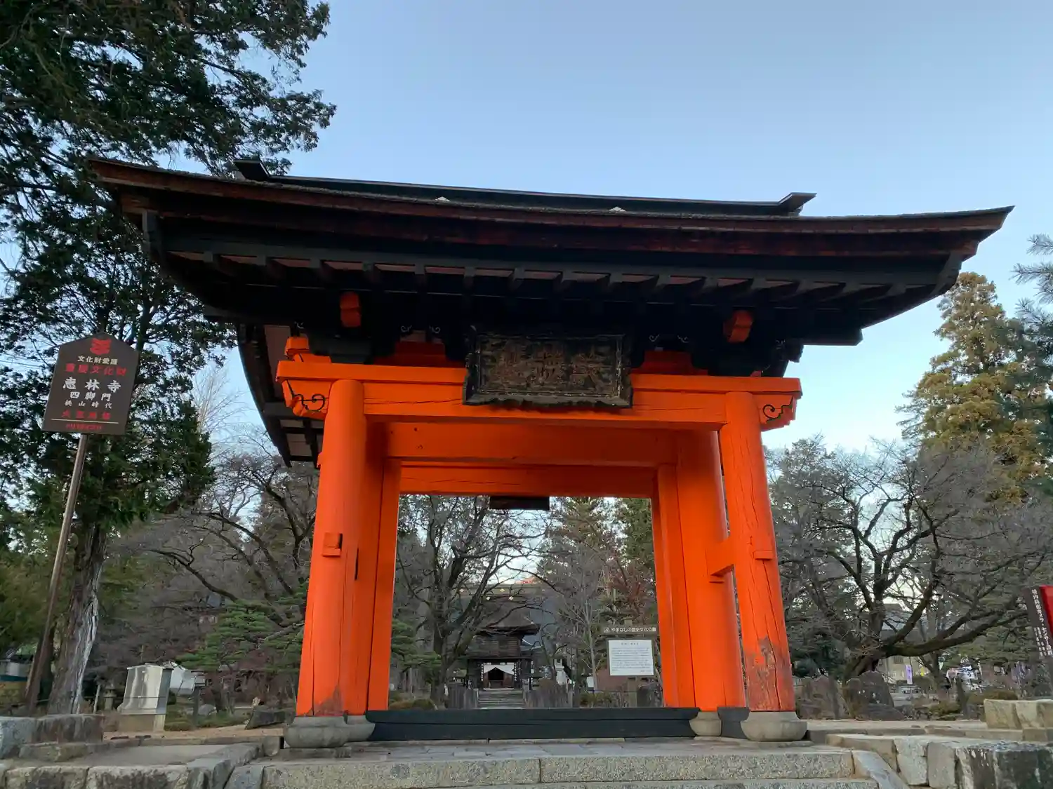 山梨県の重要文化財に指定される三門です。織田信長の焼き討ちで壮絶な火定を遂げた快川和尚。燃えさかる三門の上での「心頭滅却すれば火も自ずから涼し」という最後の言葉は有名ですが、三門に快川国師の言葉が書かれてあります。