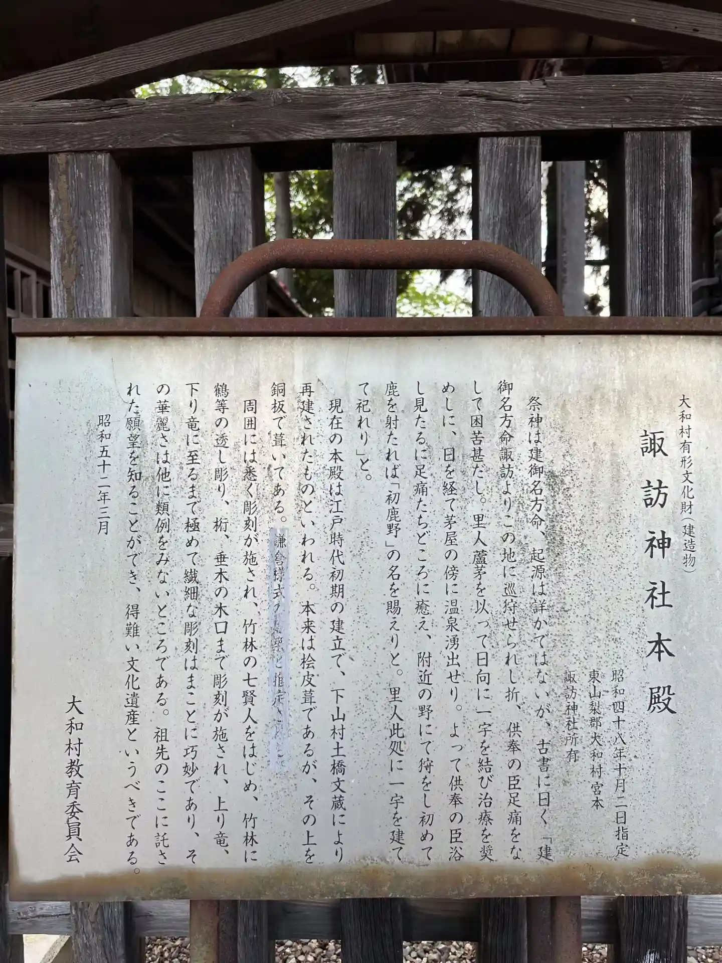 山梨県に127社ある諏訪神社のひとつで、建御名方命(タケ…