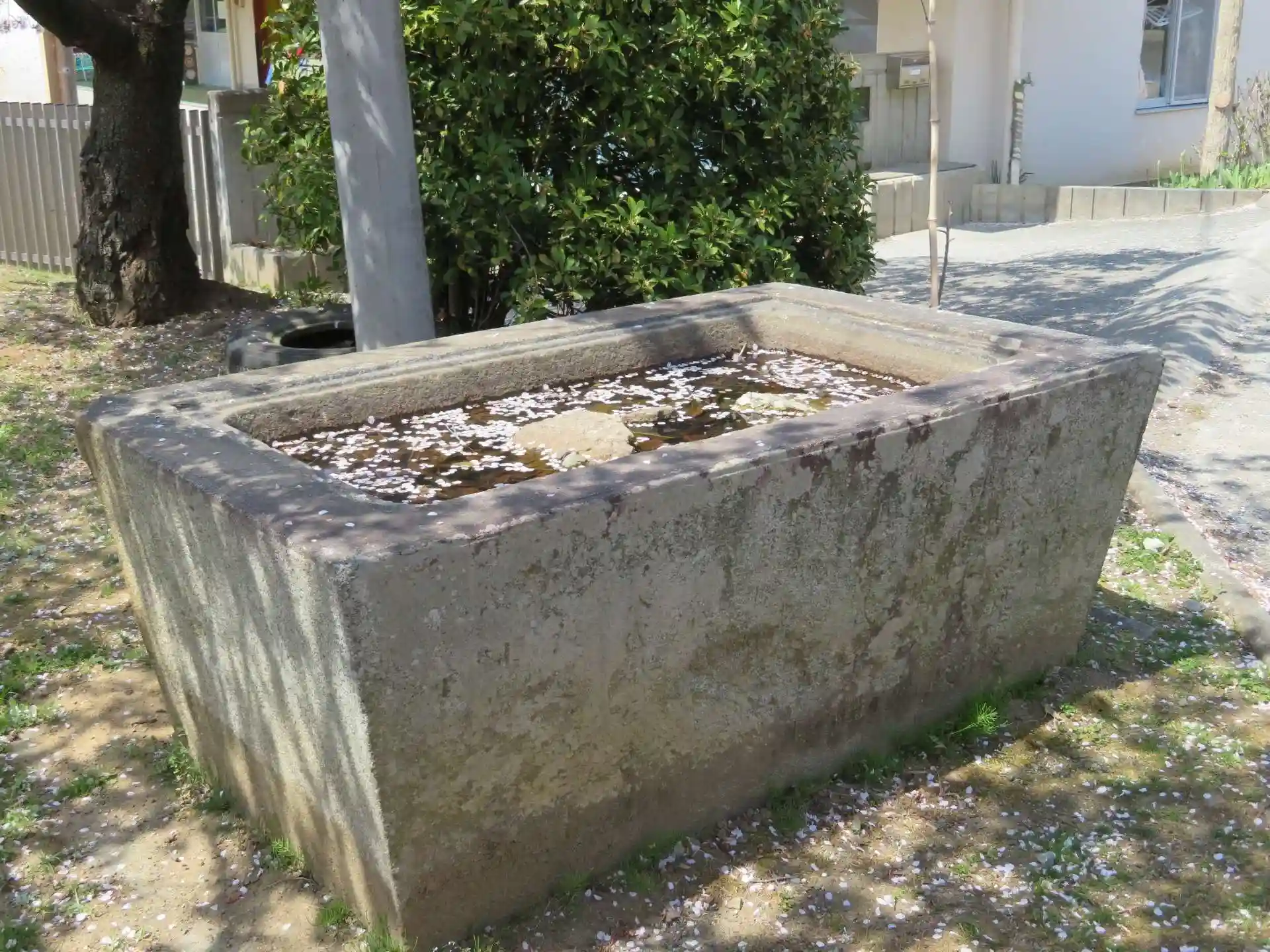 水が張られてましたが桜の花びらが一杯