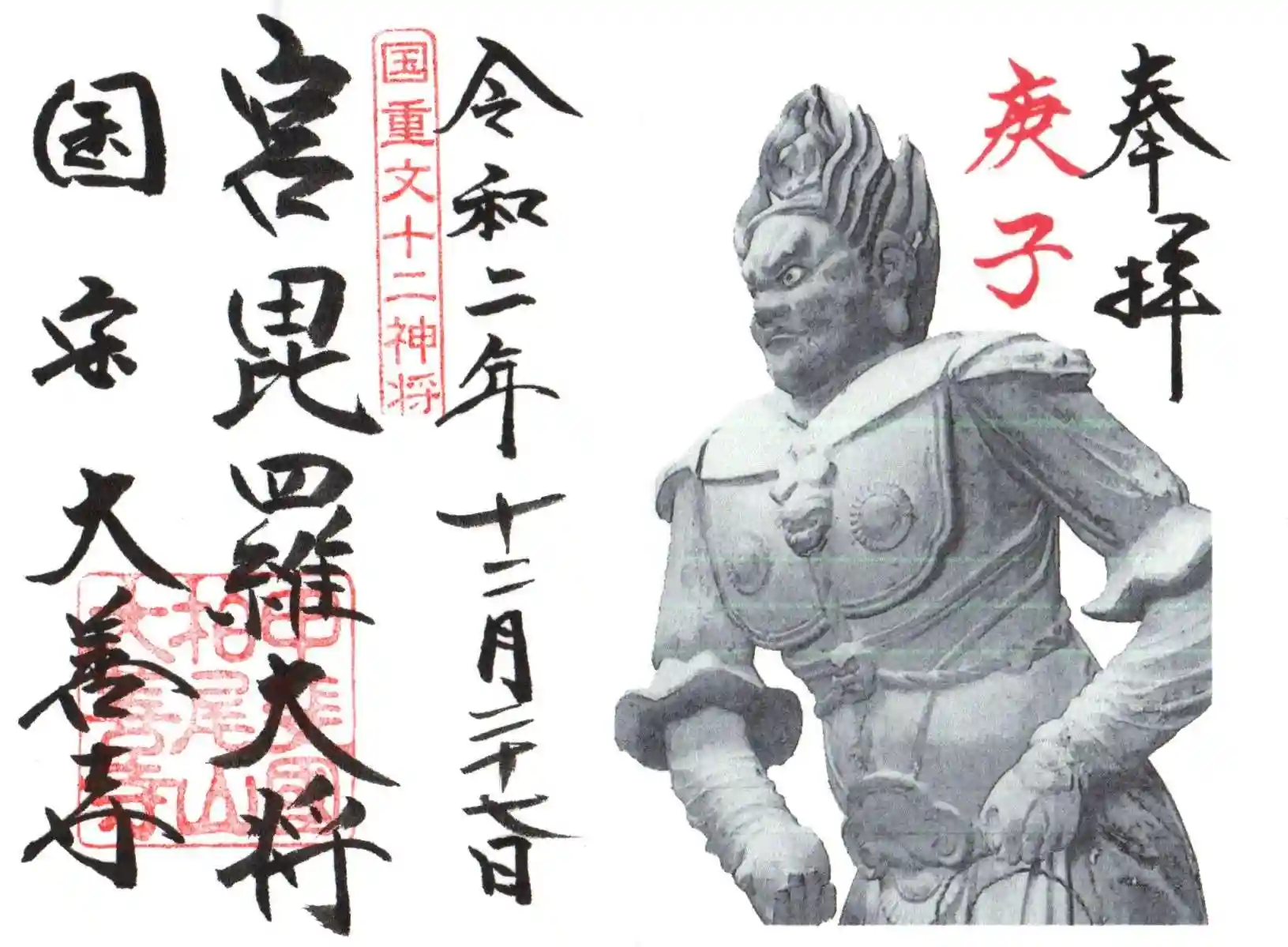 今年から始まった十二神将シリーズ、今年中に宮毘羅大将を頂かないと次頂けるのは12年後のため慌てて訪問しました。