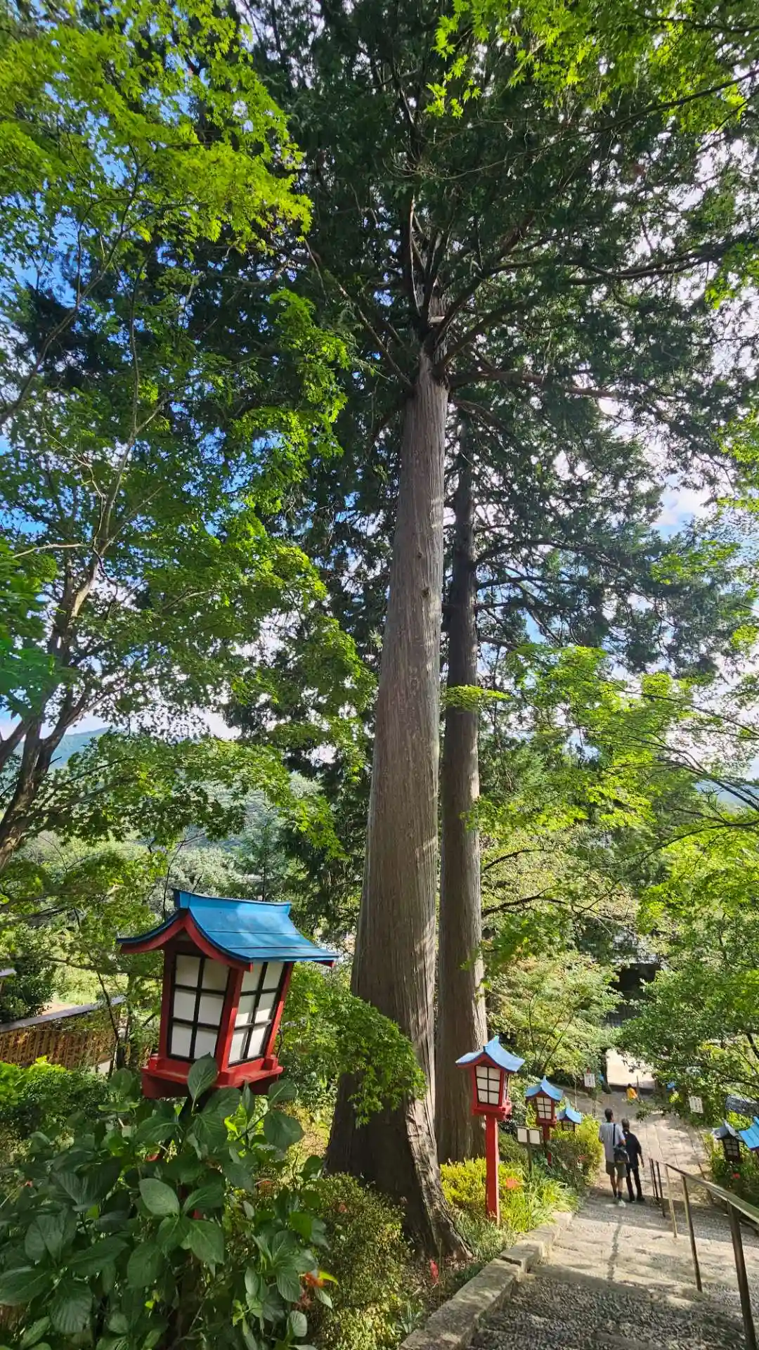 100段の階段と御神木のヒノキ