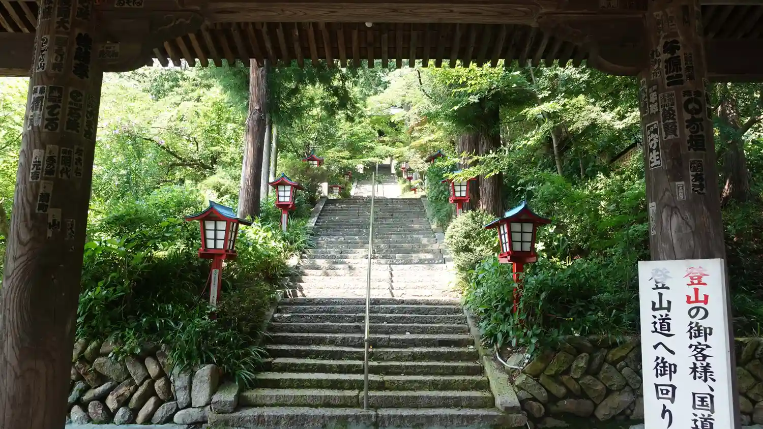 山門から参道を上から見下ろした写真