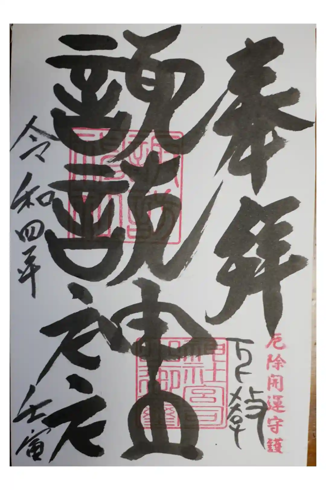 書置きの最後の一枚でしたので、宮司さんに電話し補充お…