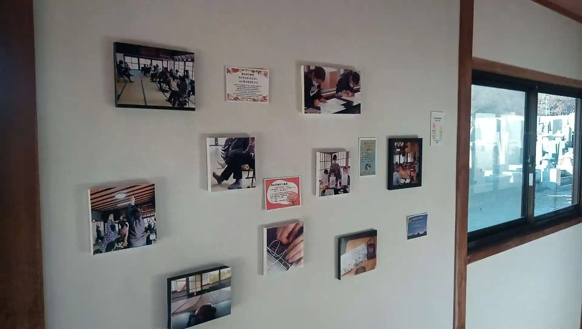 今回今まで副住職さんがインスタ投稿されていた写真が庫裏と本堂を結ぶ廊下に展示されています。