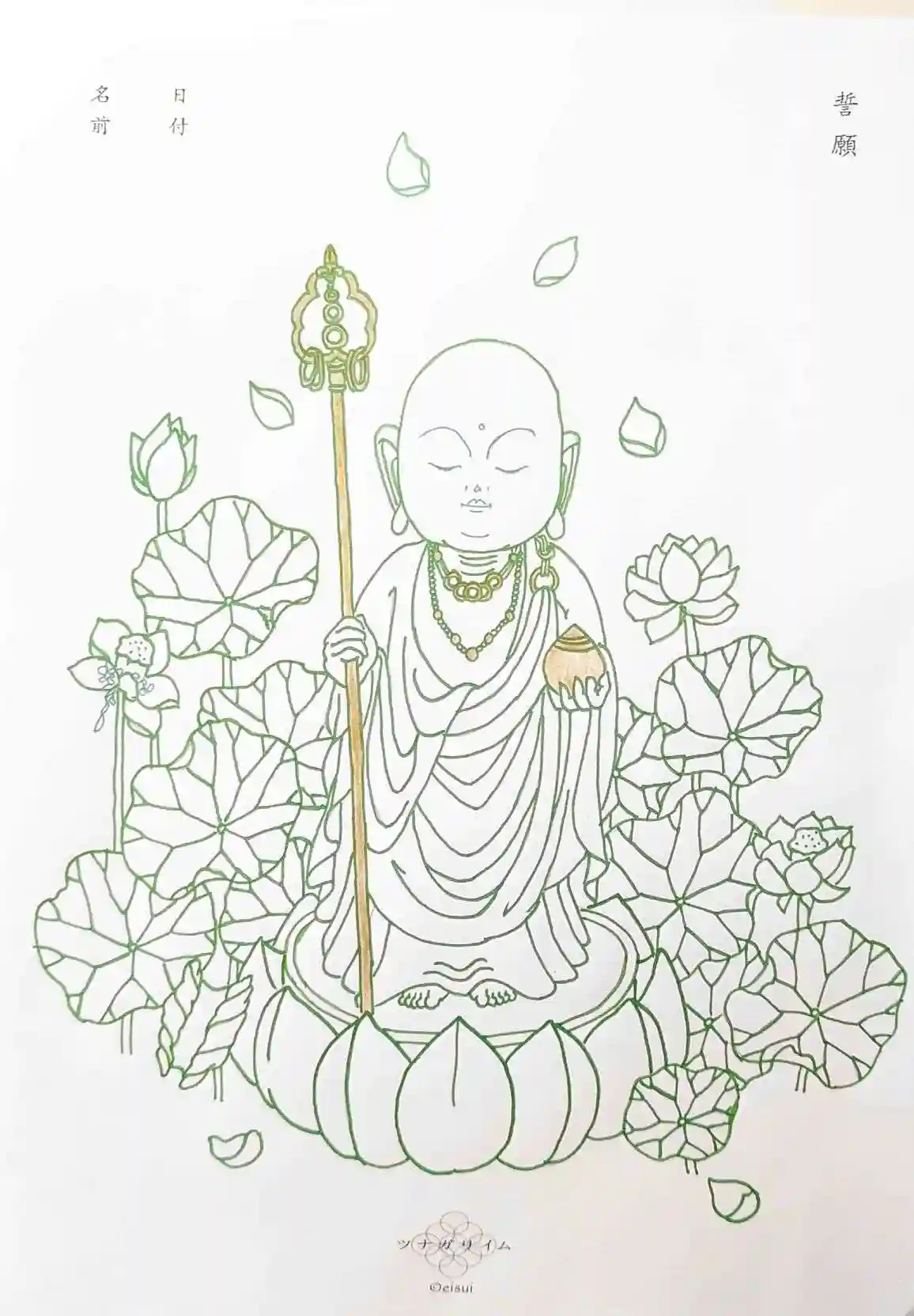 納経した写仏は、地蔵菩薩。グリーンのメタリックバージョン(^o^)