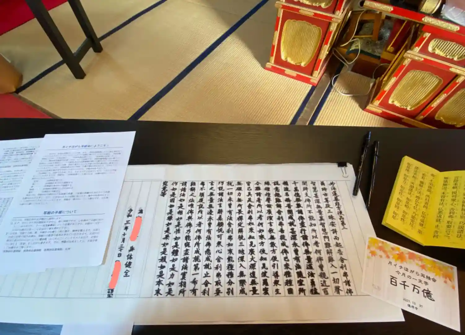 7月の写経会に参加してきた際の様子です。