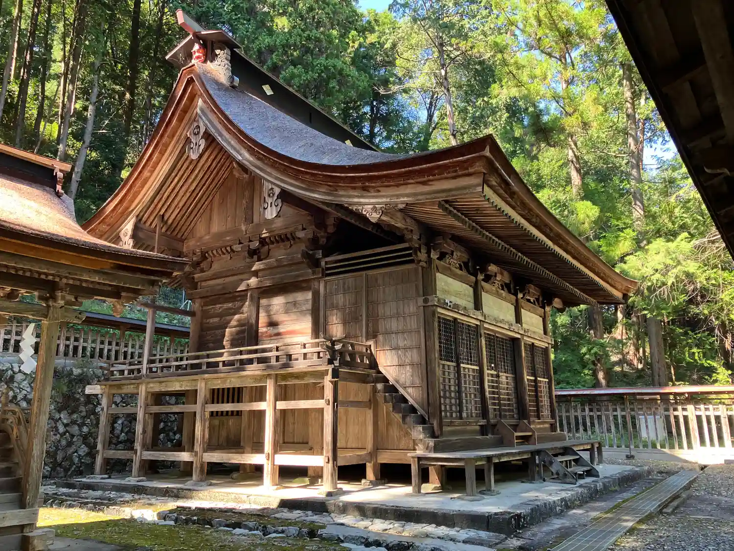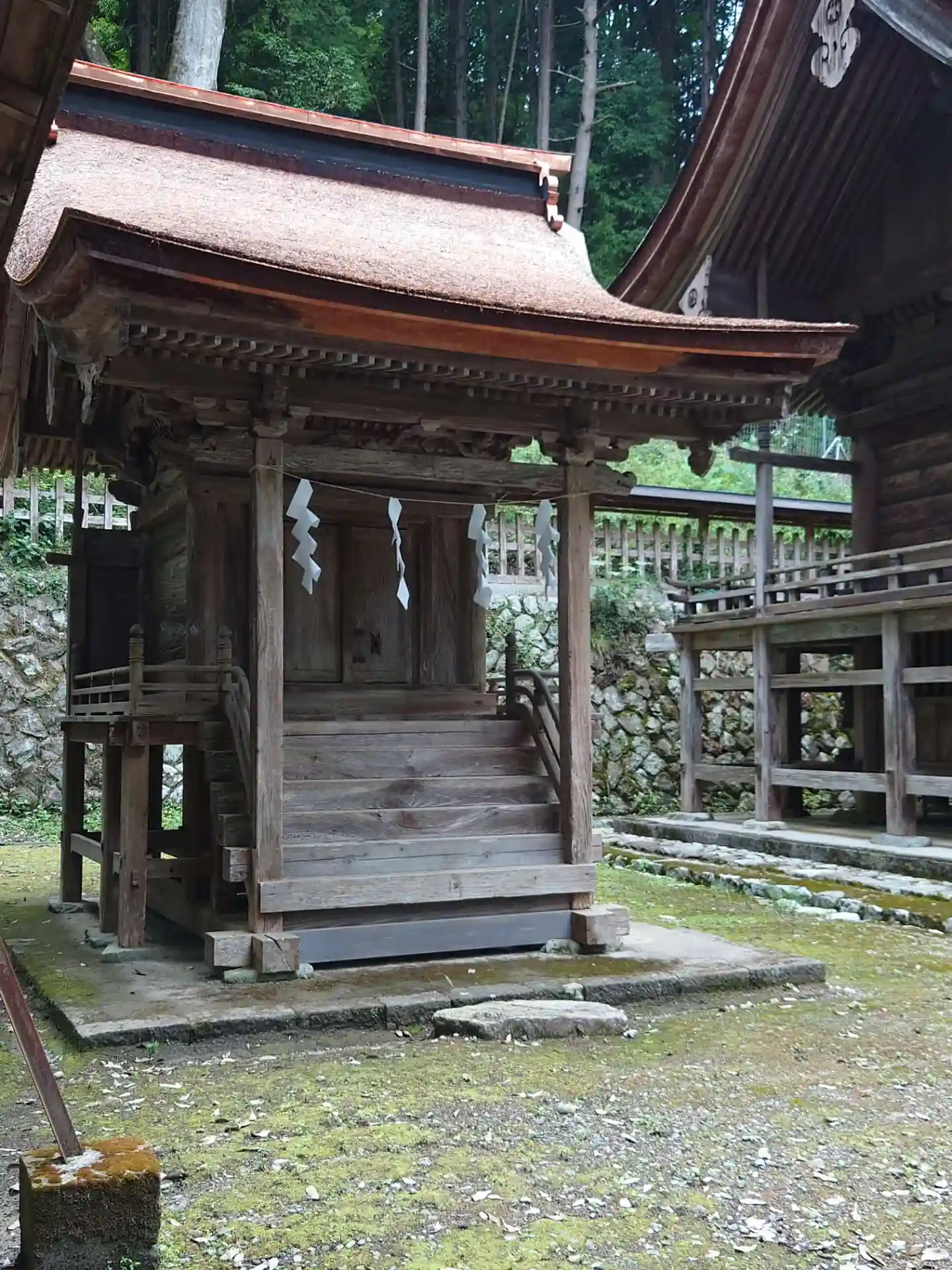 こちらが本殿脇の境内社。明るい色の檜皮葺がきれい。