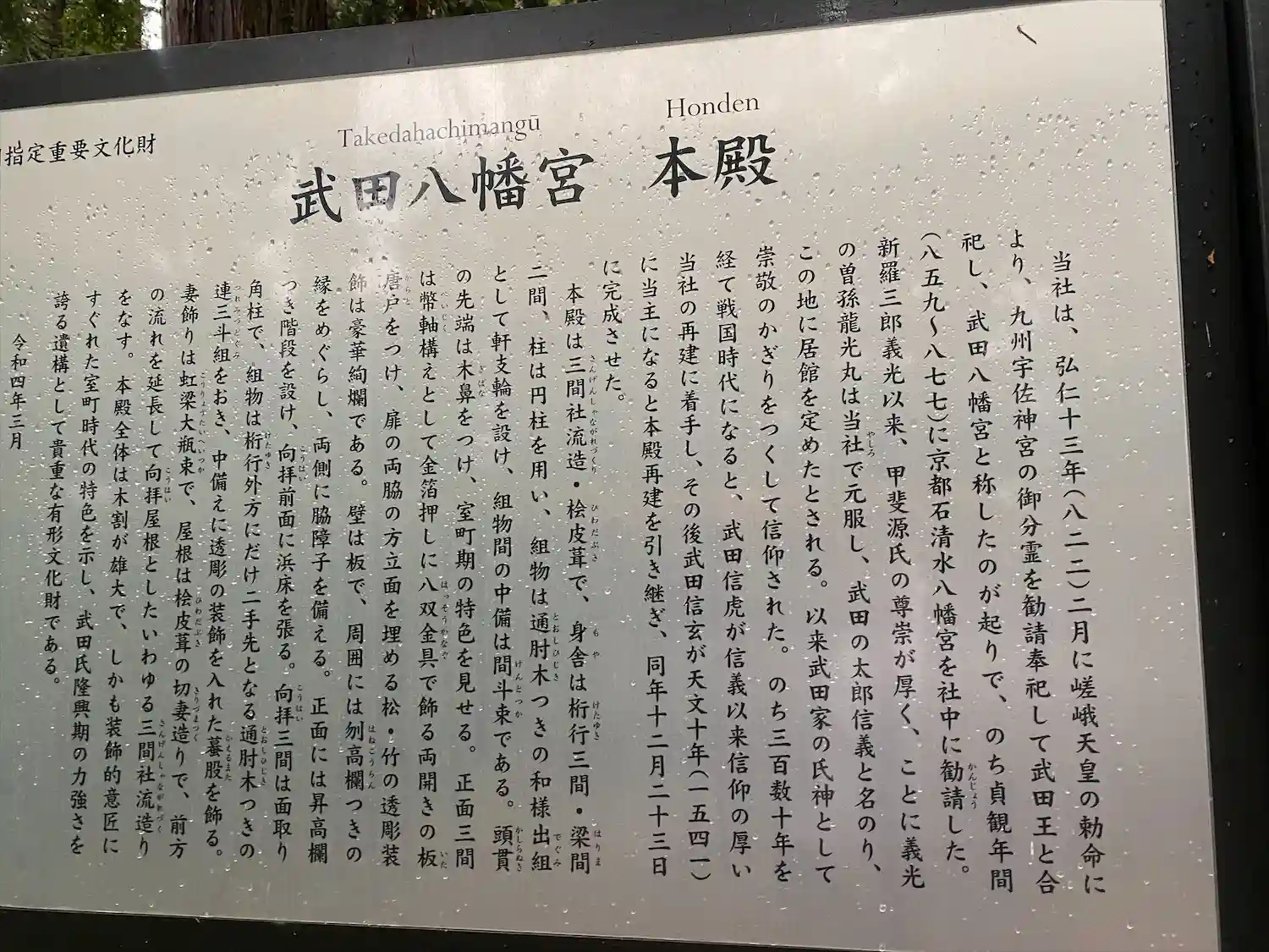 この旅行にて最後に参拝したのが山梨の武田八幡宮。