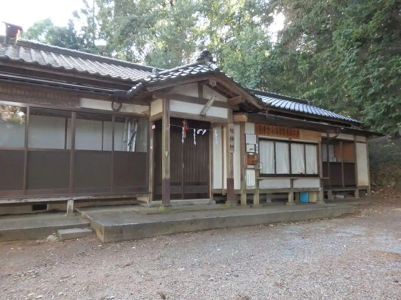 本殿を脇から。本殿の手前に境内社がある。