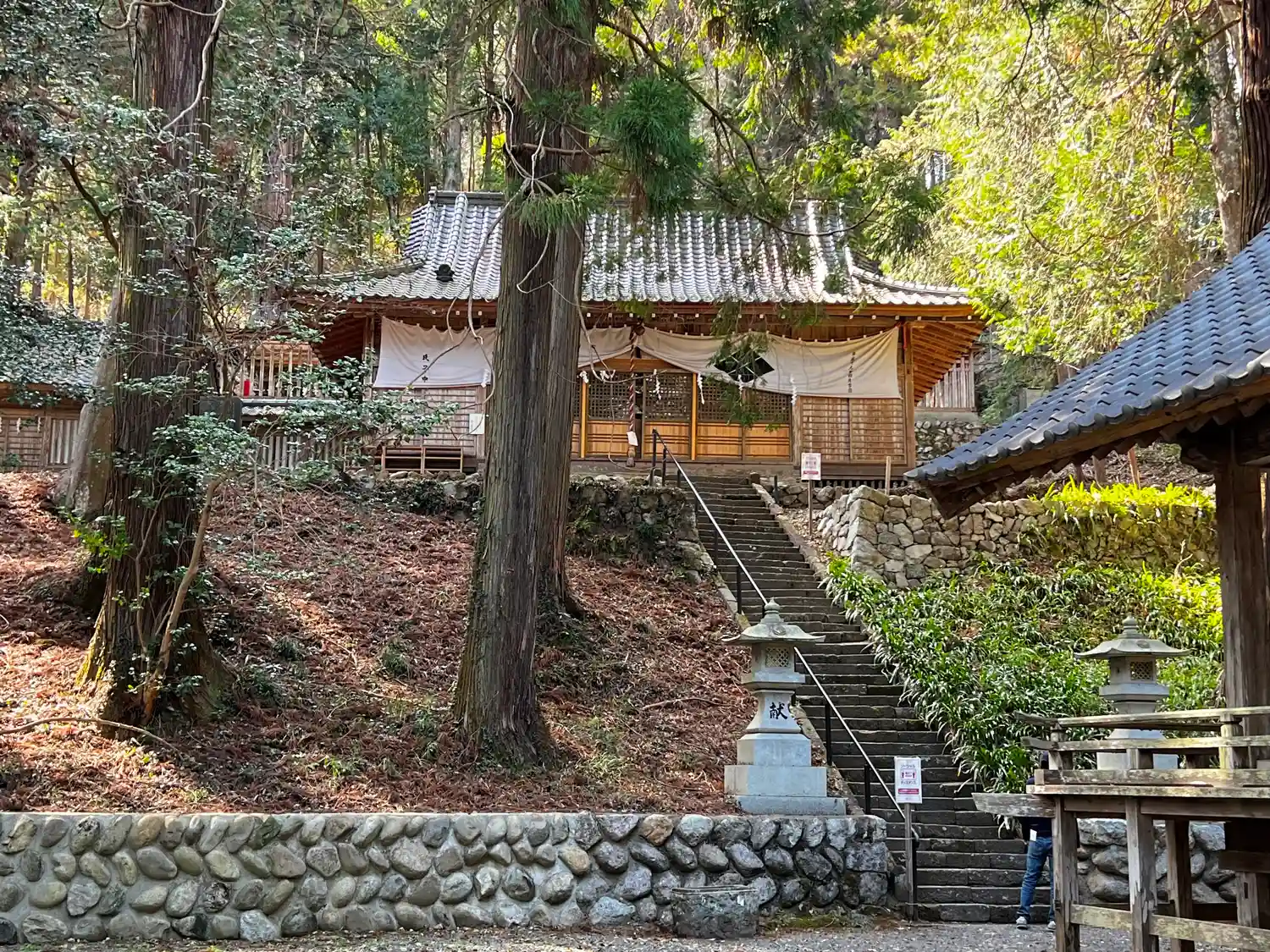 石段上から神楽殿を望む