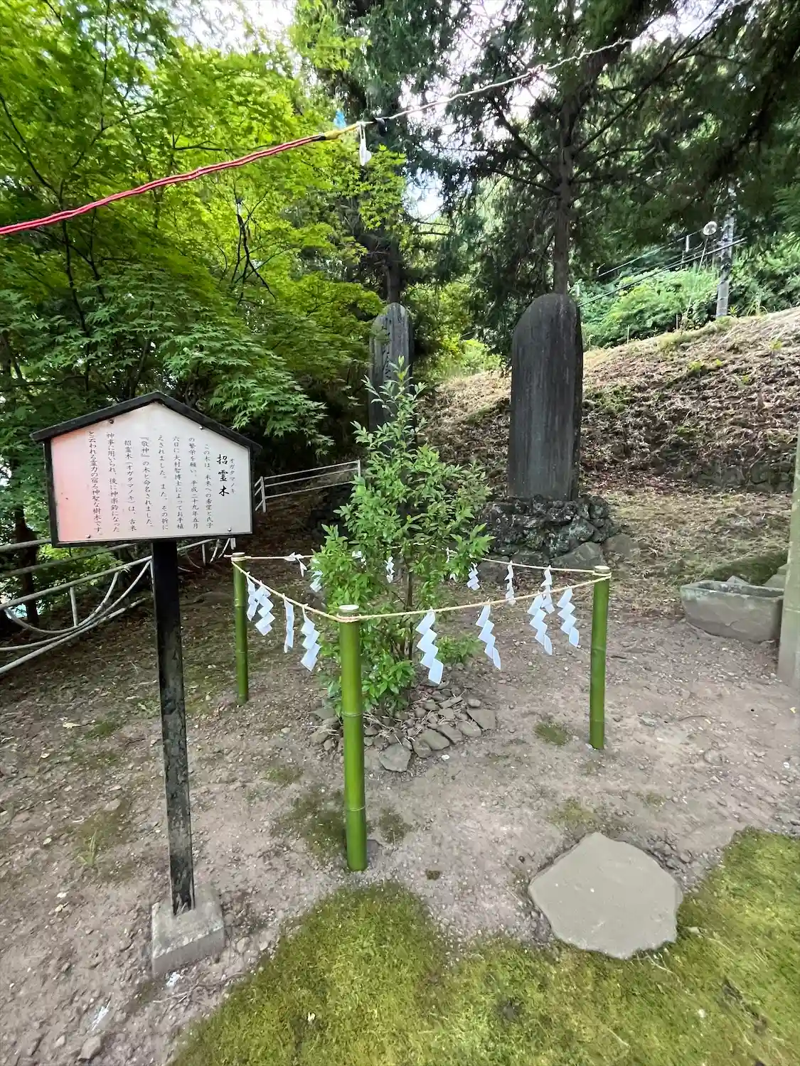 ノーベル賞受賞者の大村智博士が植えられた招霊木です。のちに神楽鈴になったと伝わる木なんだそうです。